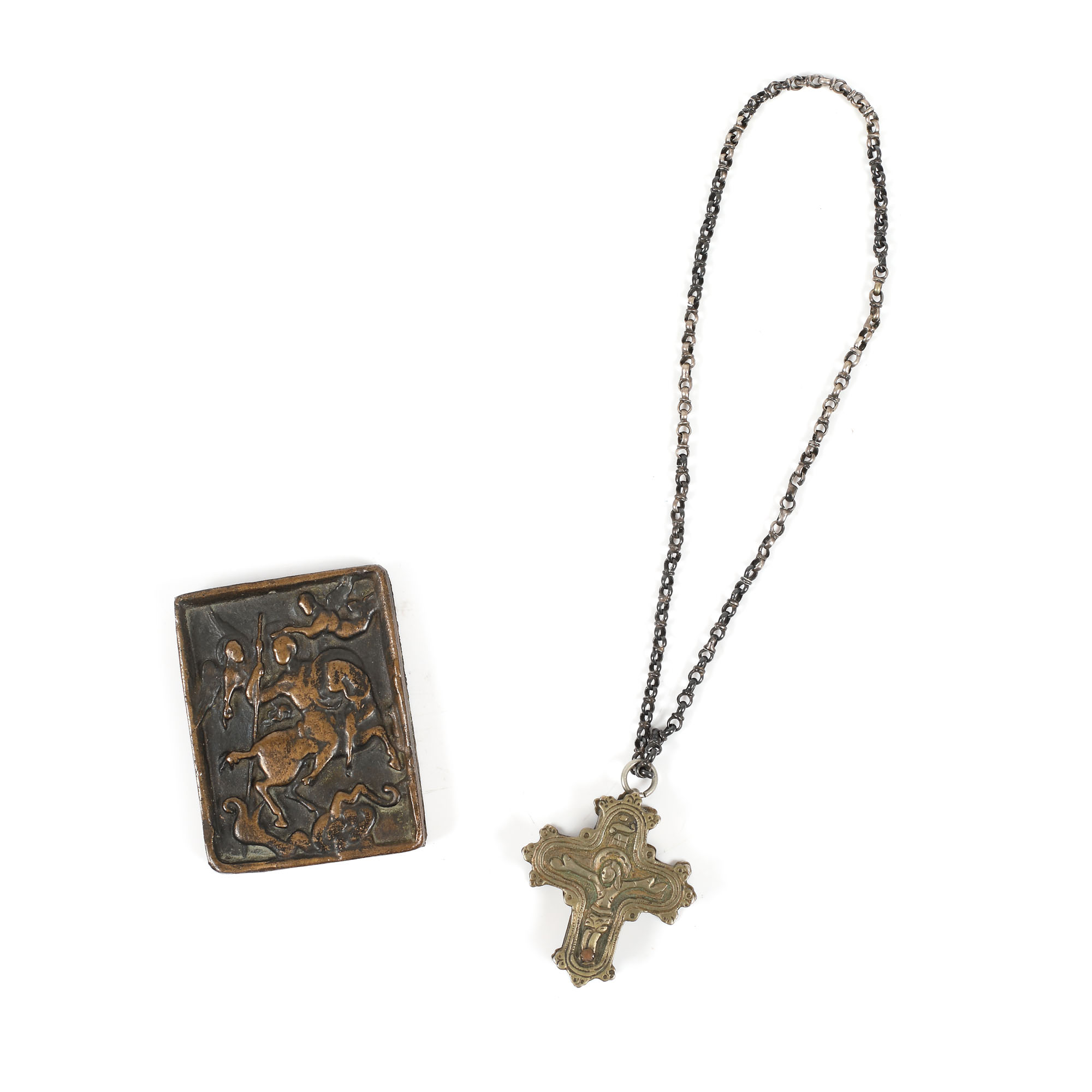 62. Matriță din bronz, ”Sfântul Gheorghe” și relicvar ”Iisus Răstignit”, sec. XIX