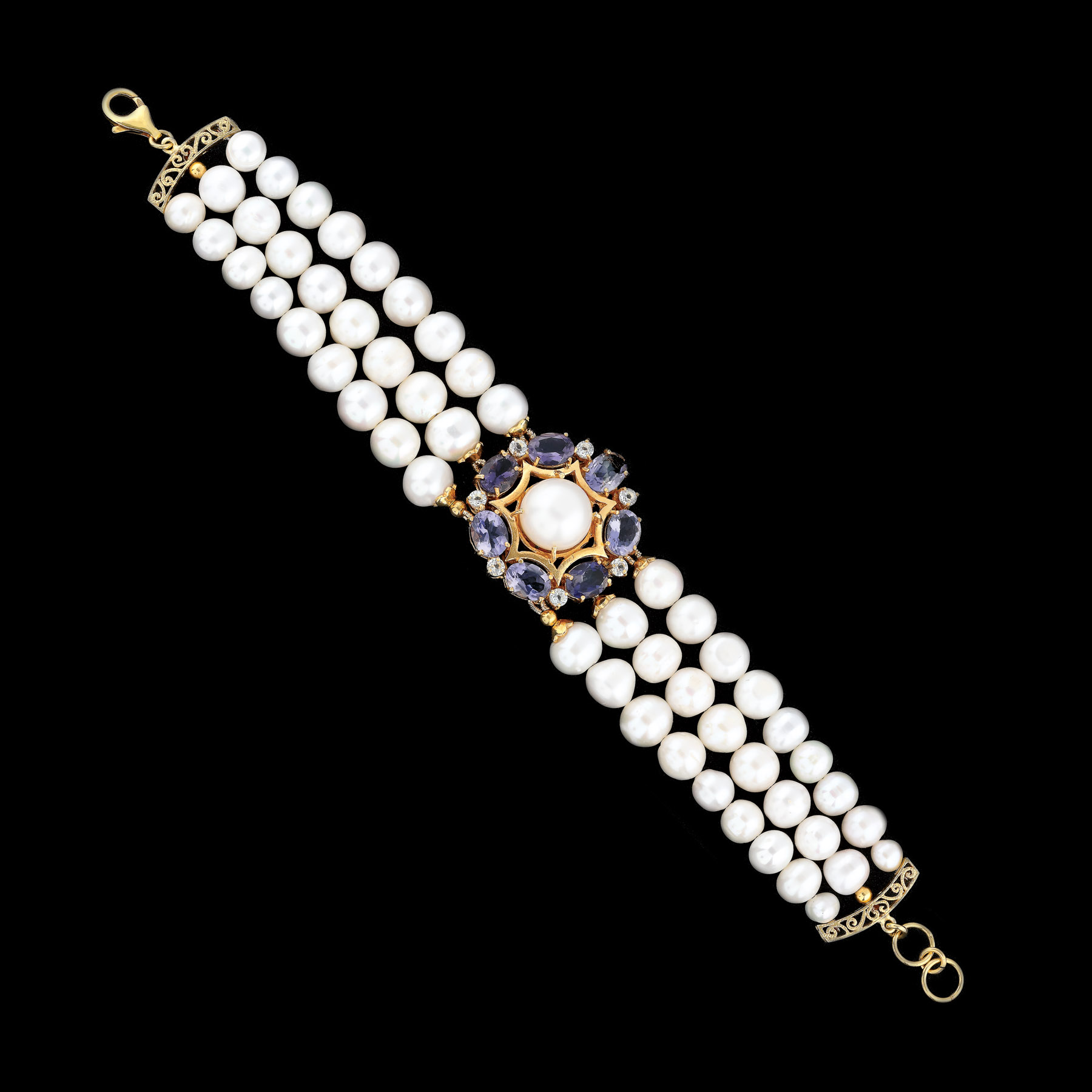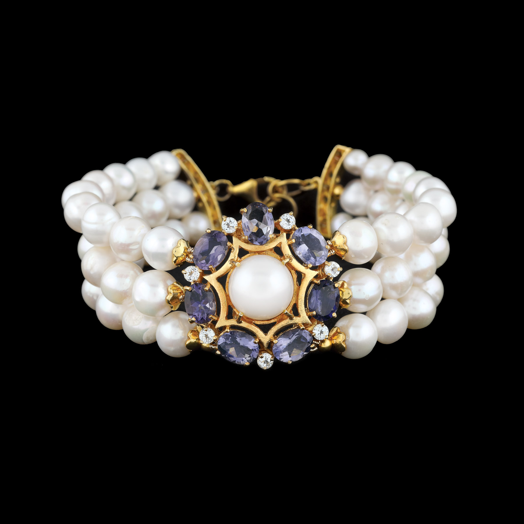 248. Brățară din perle, decorată cu argint aurit, iolite și topaze albe