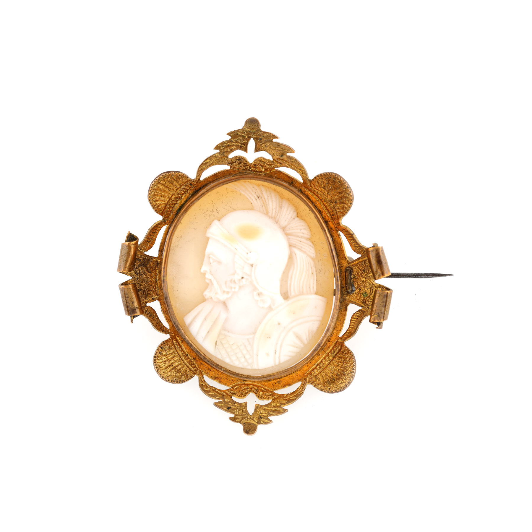 229. Broșă-camee profilând un soldat roman, cu ramă din pomponne