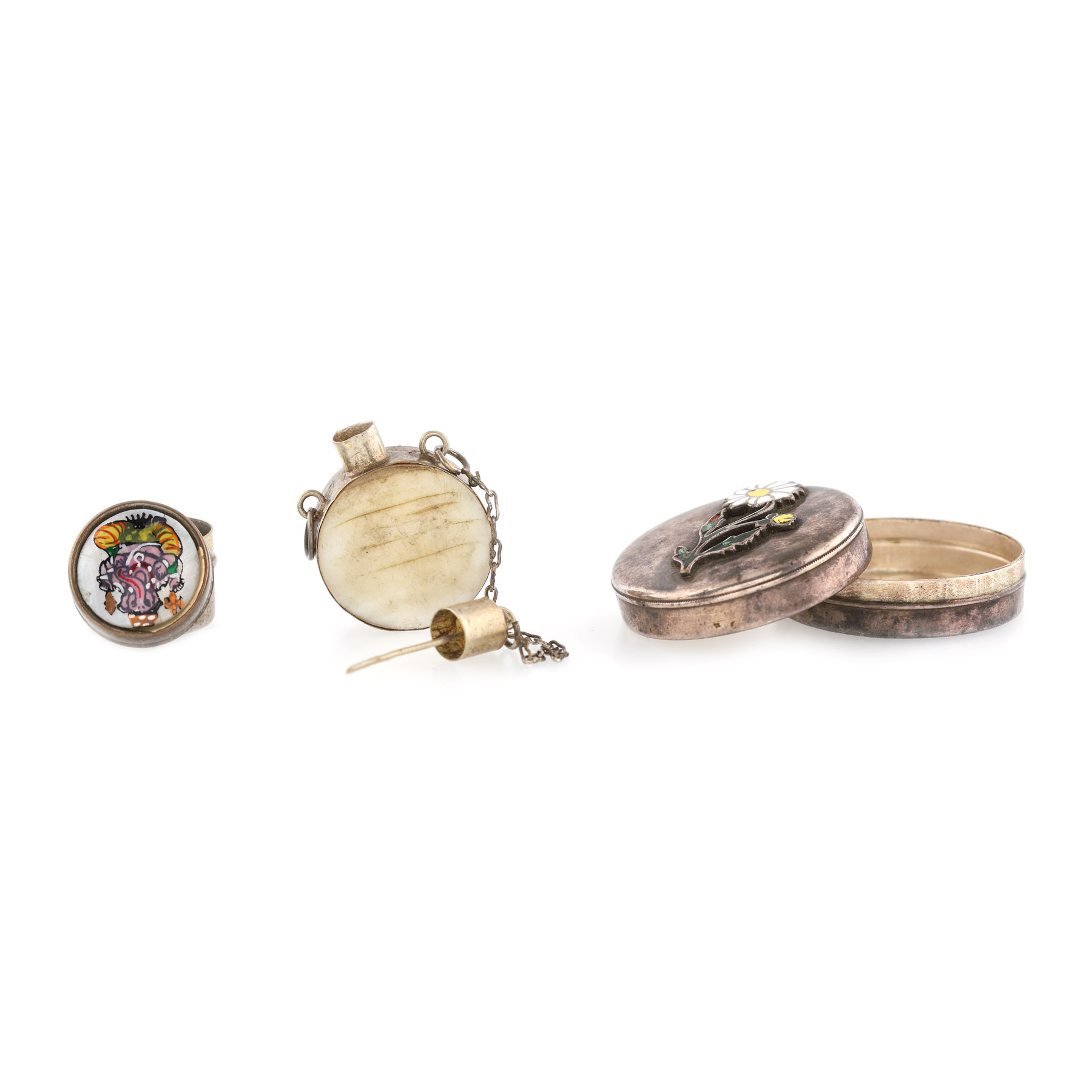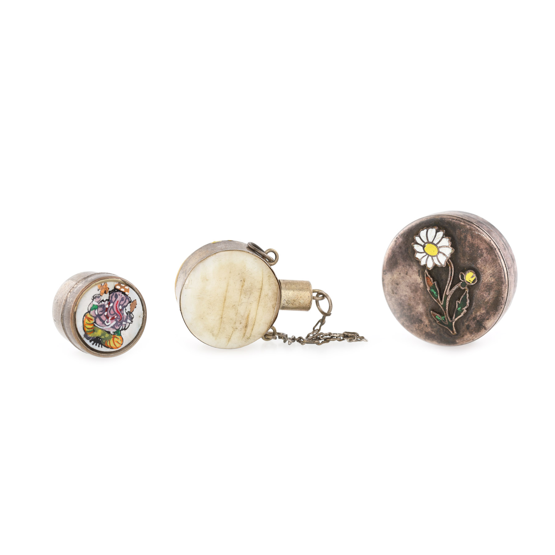 236. Colecție de 3 cutii miniaturale din argint parțial emailat
