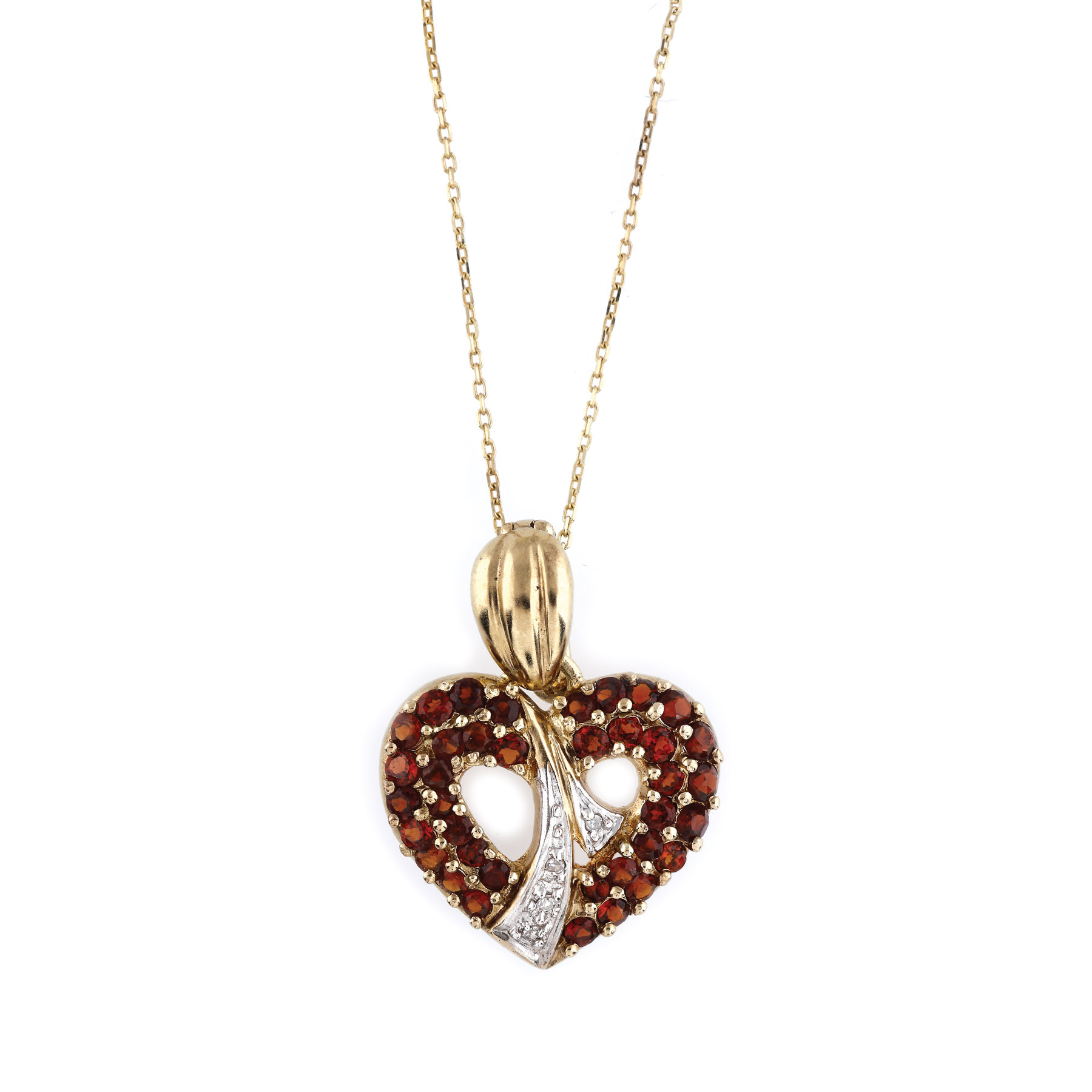 245. Lanț cu pandantiv-inimă din aur, ornat cu granate și diamante