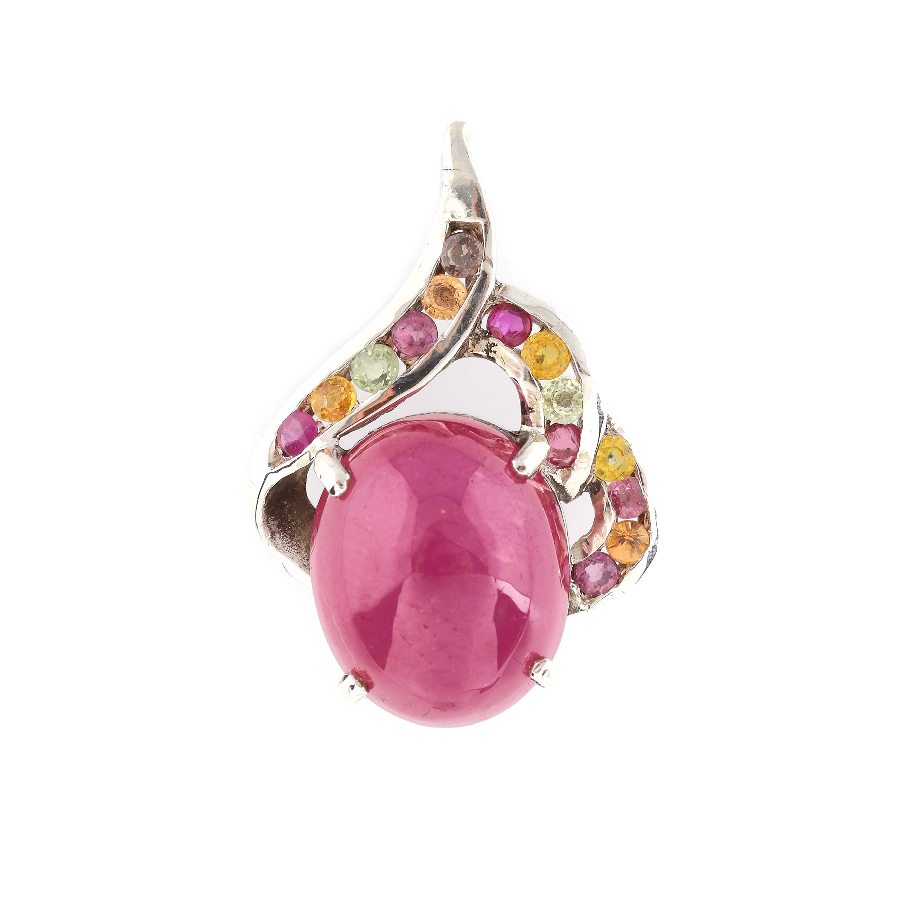 256. Pandantiv din argint, ornat cu safire și rubin caboșon