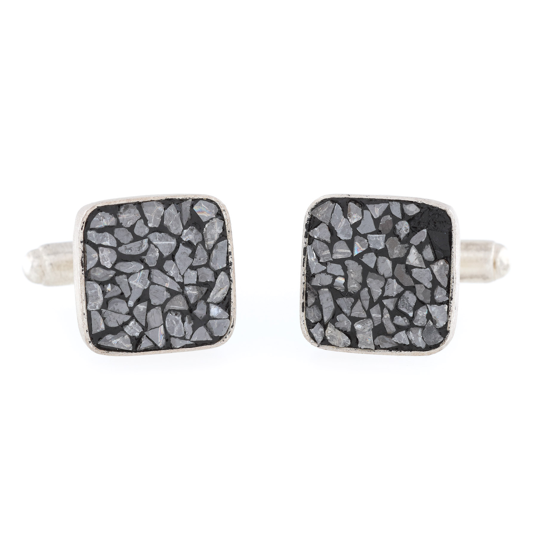243. Pereche de butoni din argint, decorată cu diamante brute, executată manual