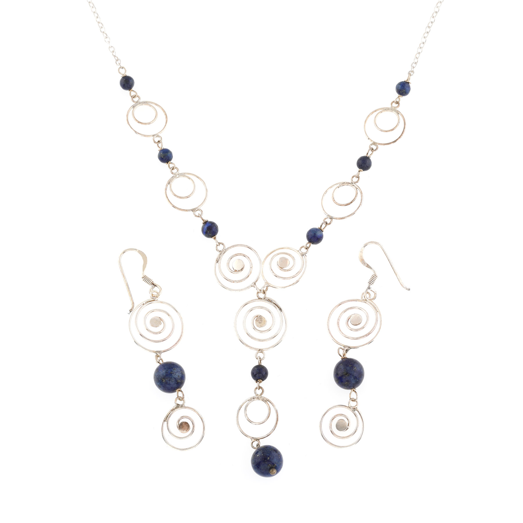 260. Set din argint, compus din colier și pereche de cercei, decorat cu Lapis Lazuli