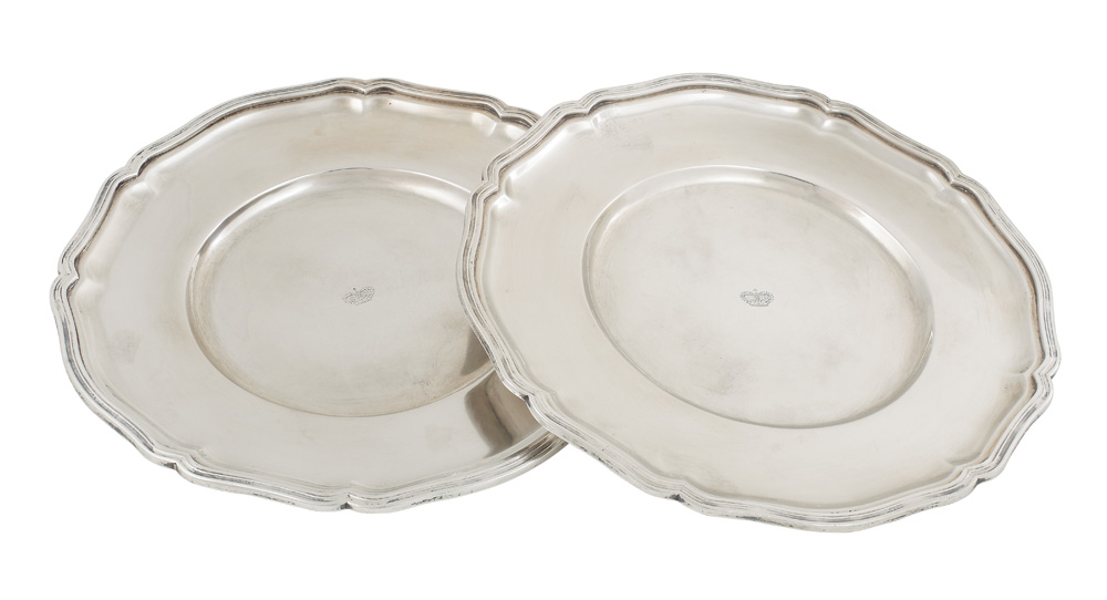 142. Pereche de farfurii din argint, proveniență princiară, cca 1937