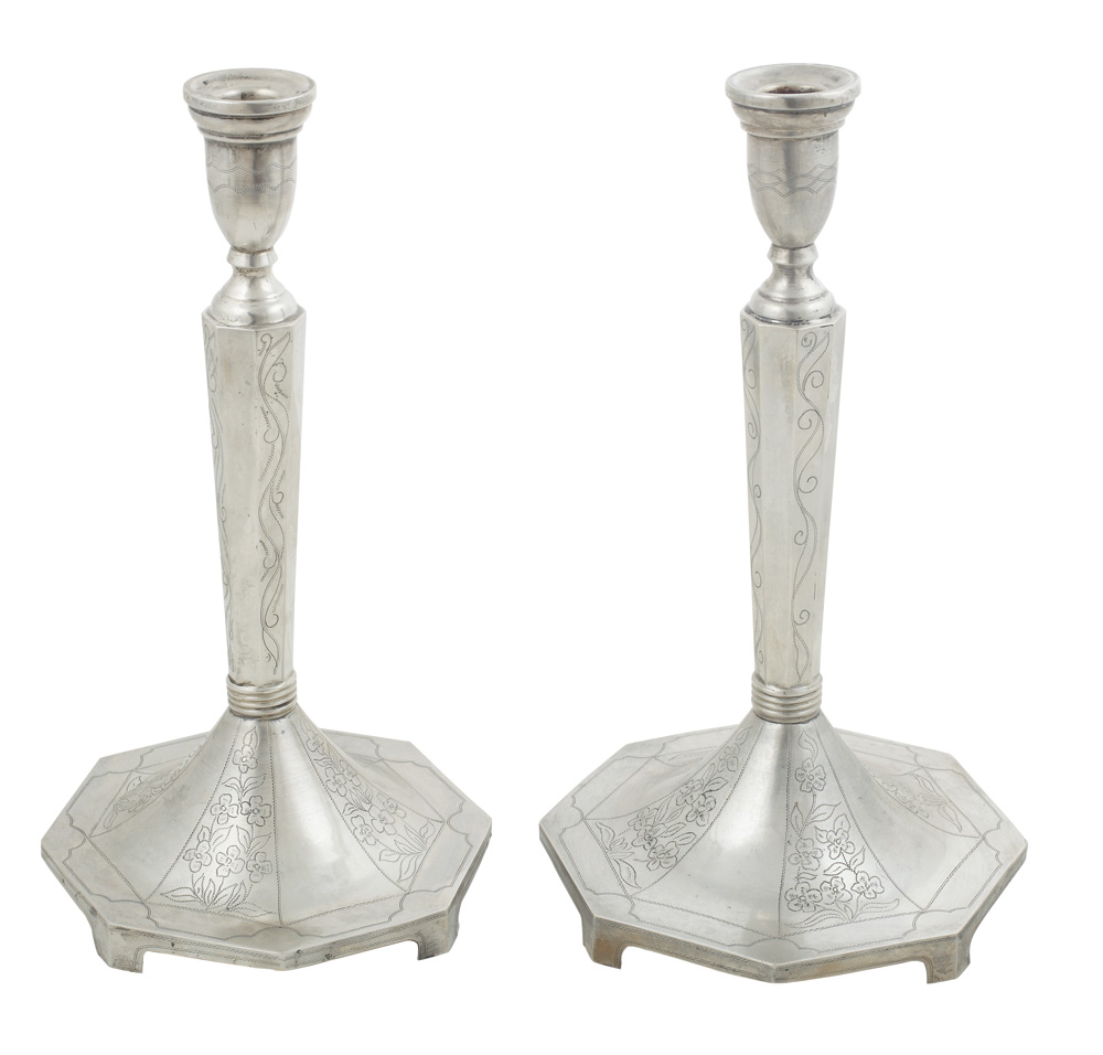 141. Pereche de sfeșnice din argint, manieră Art Deco [Cca 1937-1965]