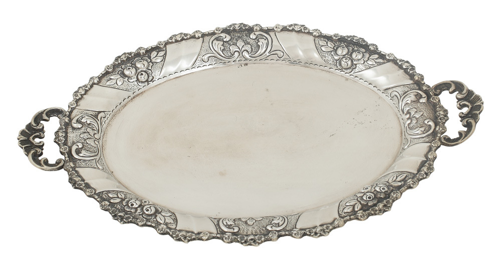 136. Tavă cu anse din argint, decorată cu cochilii şi boboci de trandafir [Sfârşitul secolului XX]