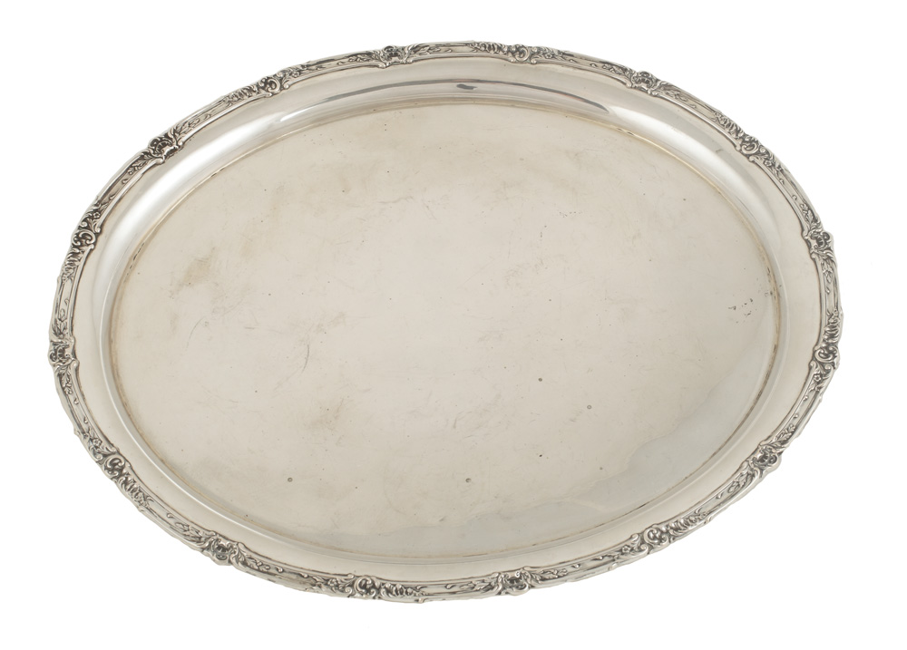84. Tavă germană din argint, decorată cu motive florale, în manieră Rococo [Începutul secolului XX]