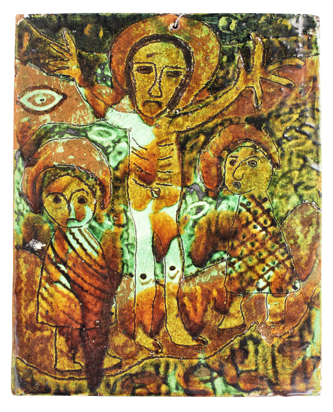 47. Cahlă pictată, ”Iisus cu Viţă de Vie”, sec. XX, provine din colecția Marga și Eugen Barbu