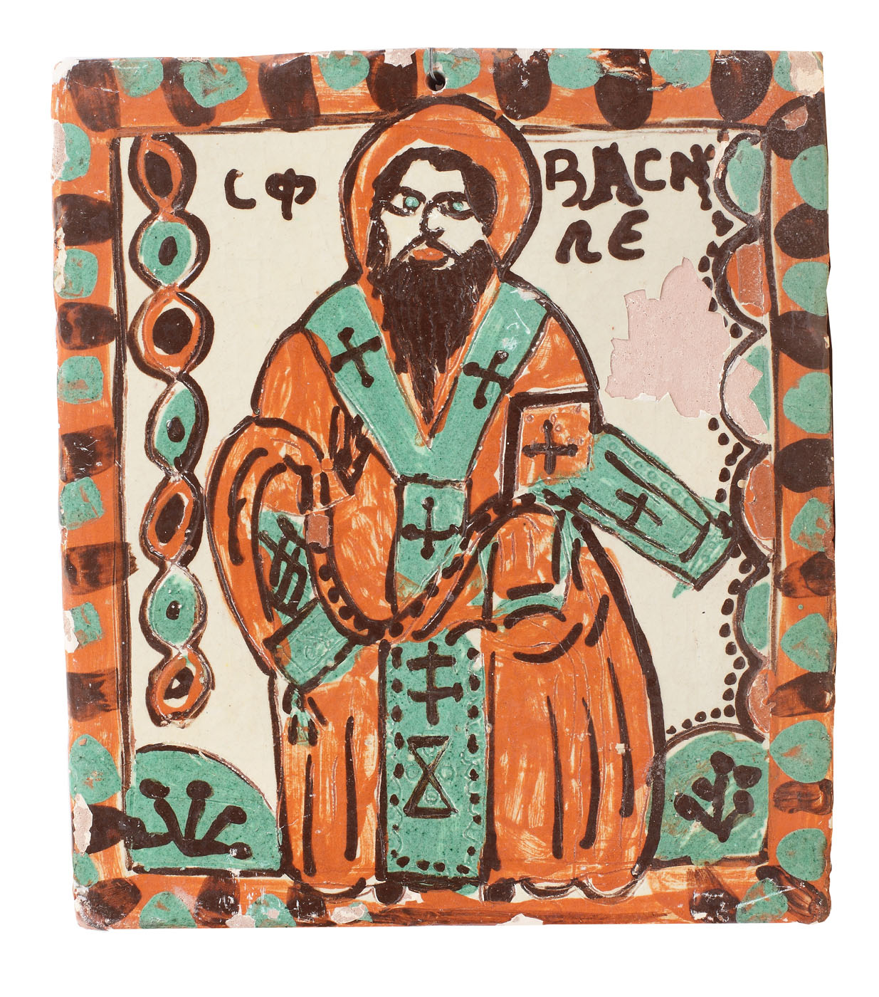 46. Cahlă pictată, ”Sfântul Vasile”, sec. XX, provine din colecția Marga și Eugen Barbu