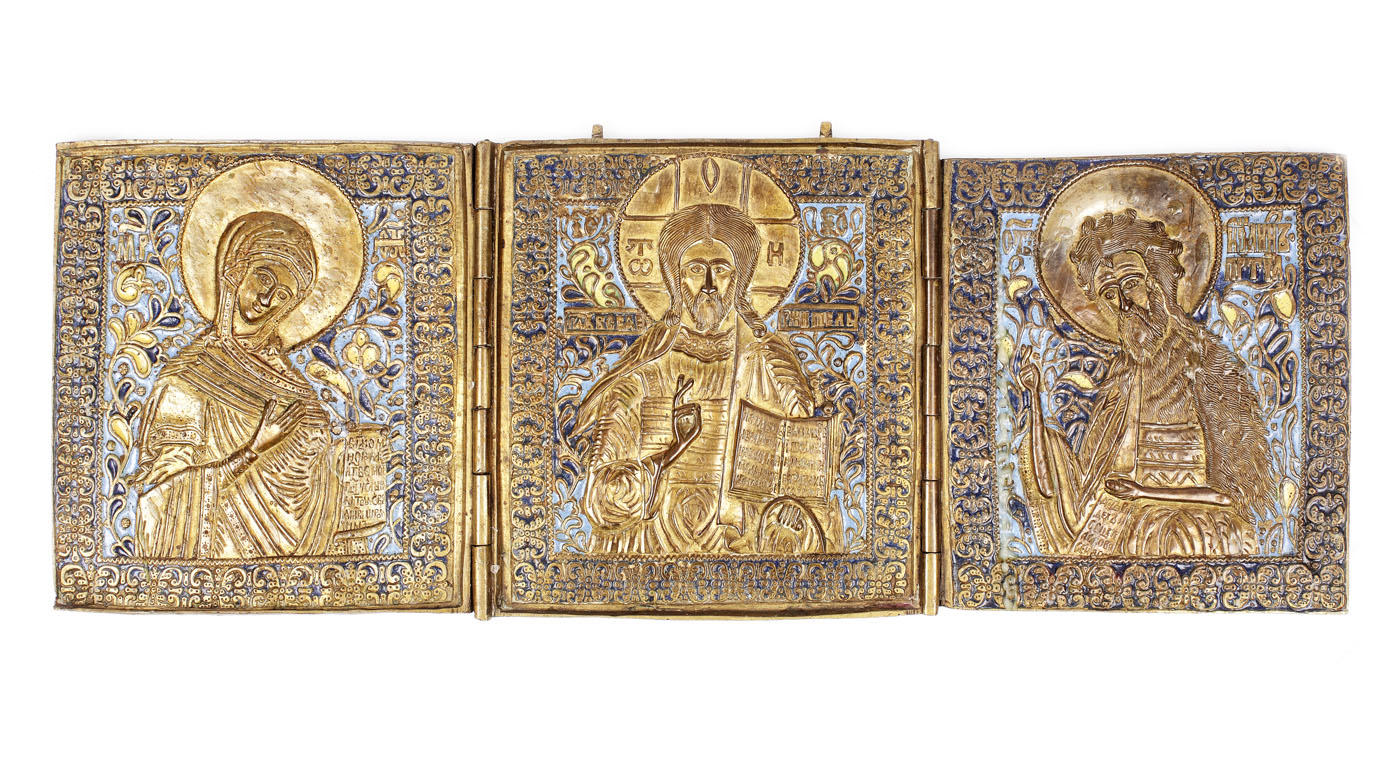 67. Triptic, icoană de călătorie, sec. XIX, provine din colecția Marga și Eugen Barbu