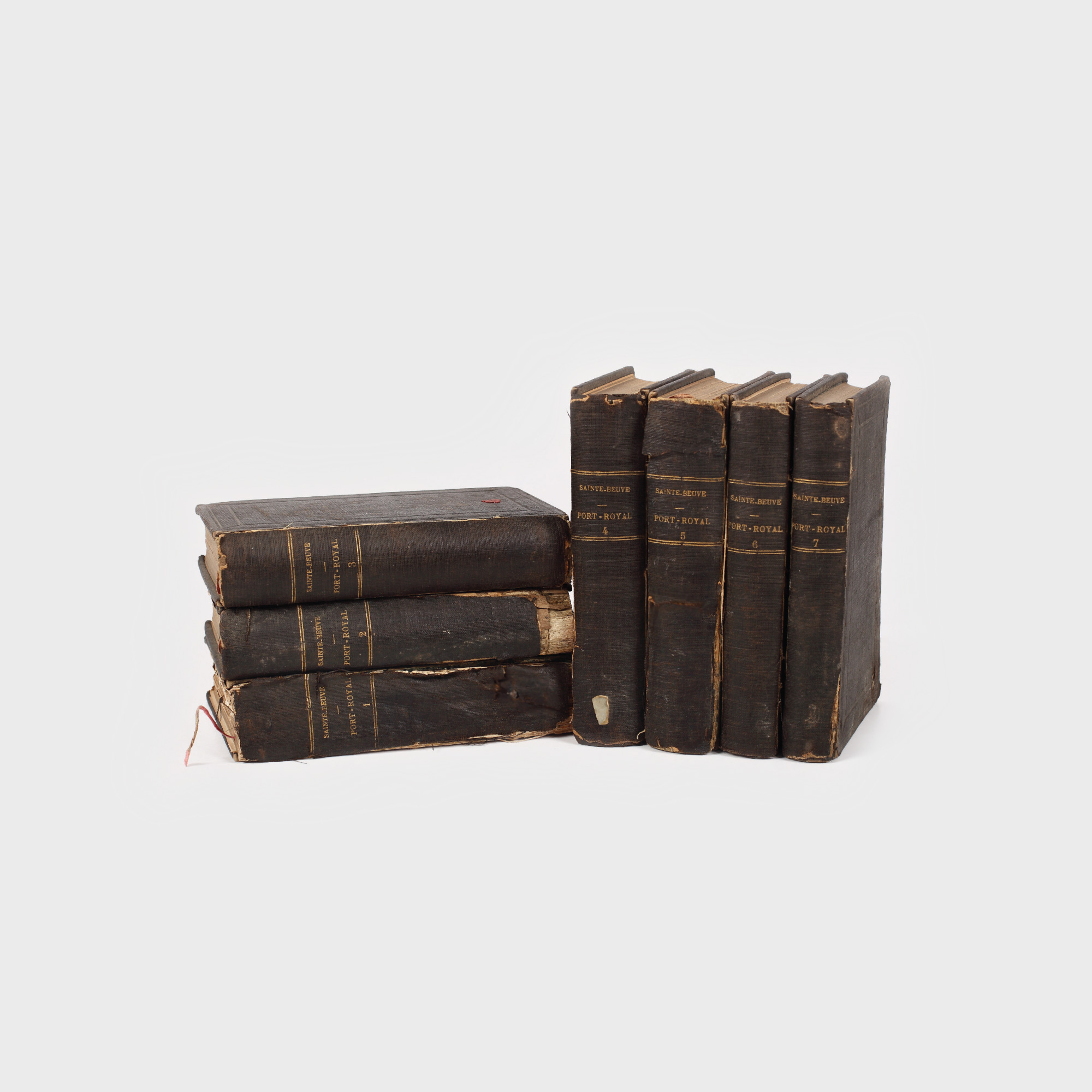 "Port-Royal" de Charles Augustine de Sainte Beuve, Librairie Hachette Paris, 1888, 7 volume cu legătură în pânză pe carton. Volumul al șaptelea cuprinde și o tablă de materii a celor șase volume anterioare, alcătuită de Anatole de Mantaiglon la Paris în 1891. Ștampila cu textul "Biblioteca Cioran" este aplicată pe diverse file din toate cele șapte volume.