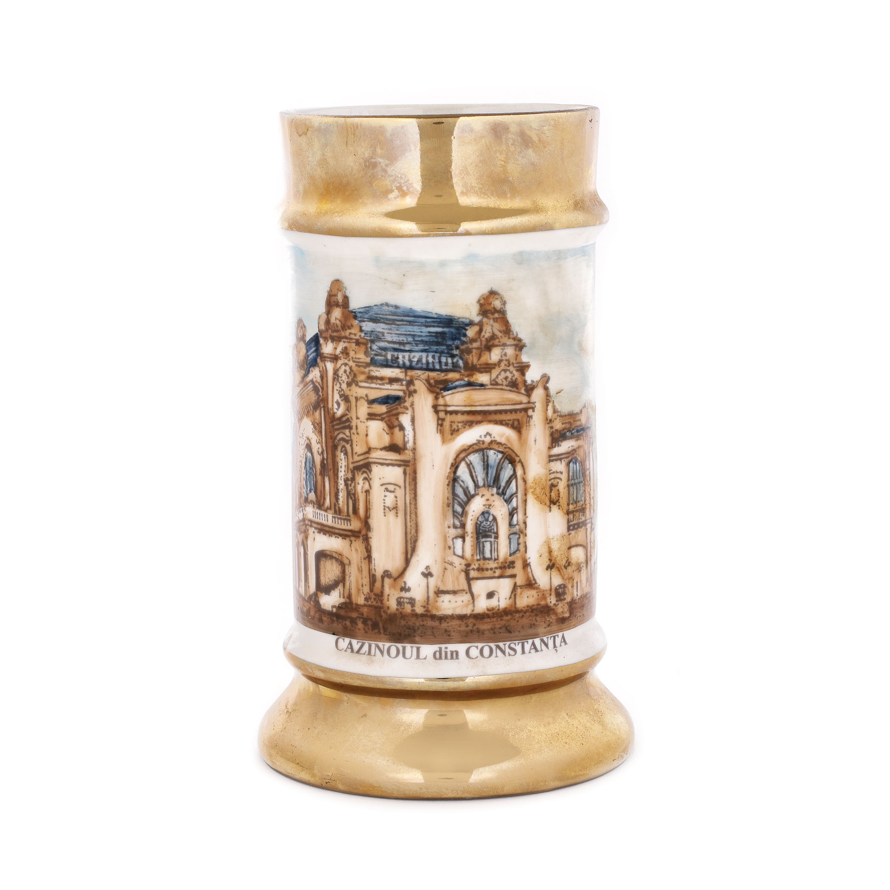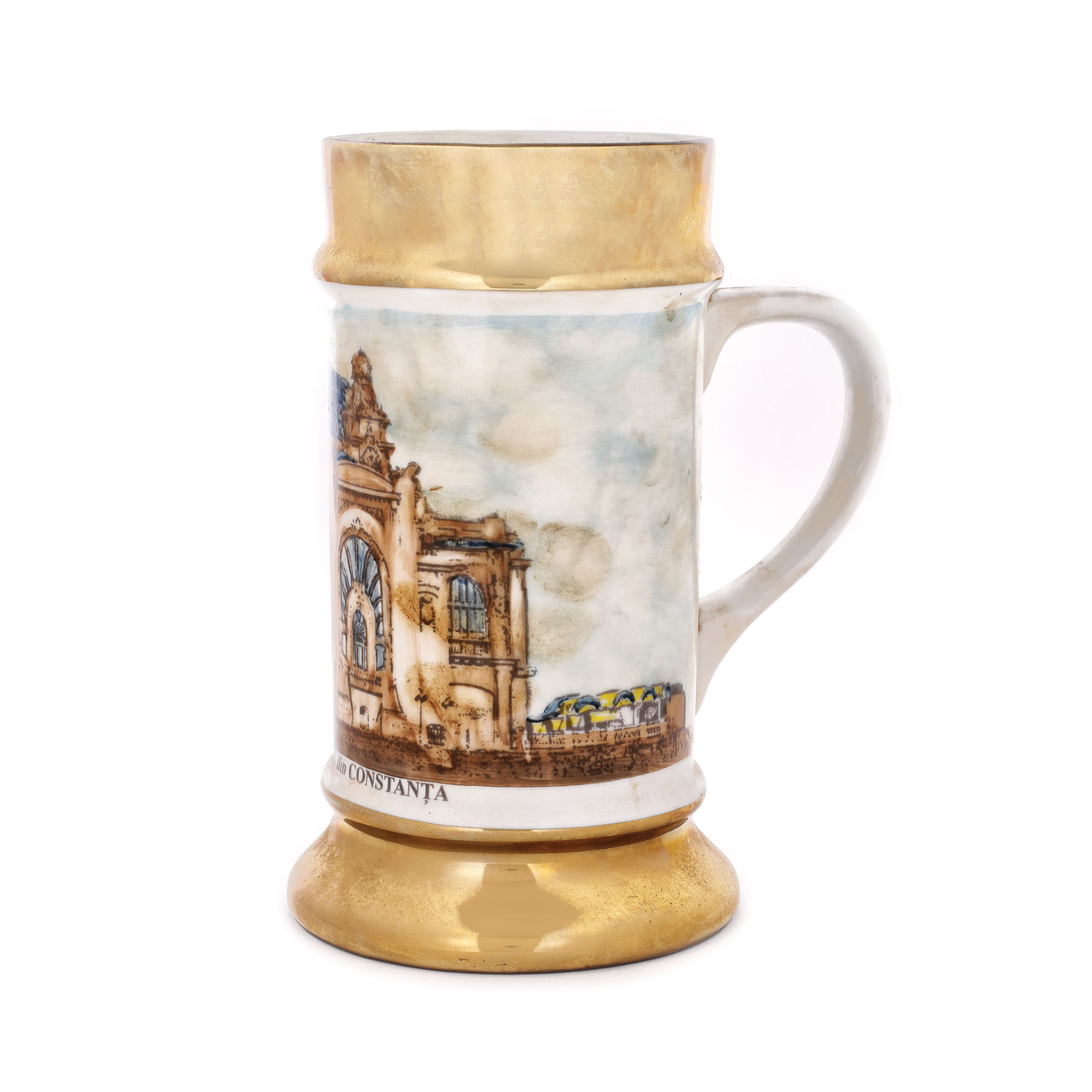 423. Carafă din porțelan, decorată cu imaginea Cazinoului din Constanța