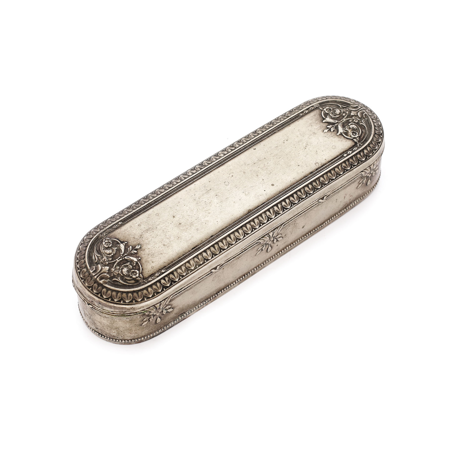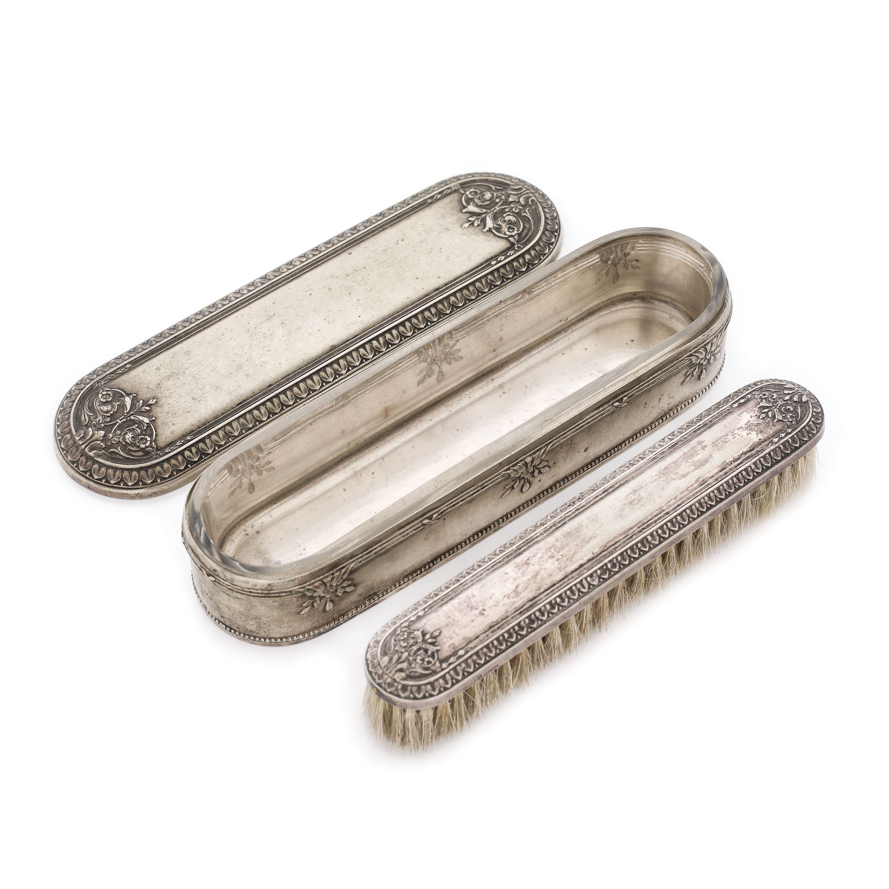 435. Etui din metal, pentru perie, cu sticlă, decorată cu registre vegetale