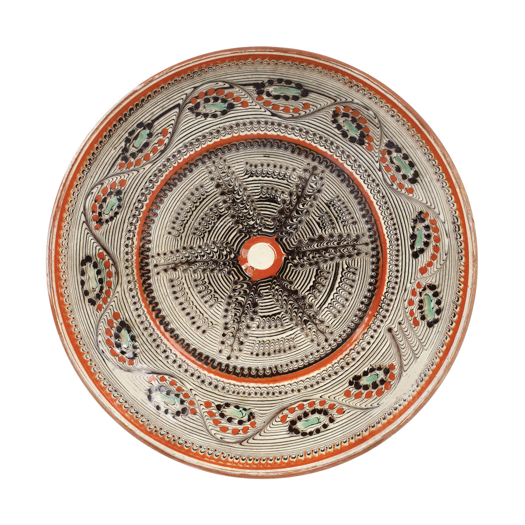 397. Farfurie din ceramică, lucrată de meșterul Eufrosina Vicșoreanu, Horezu, al treilea sfert al sec. XX