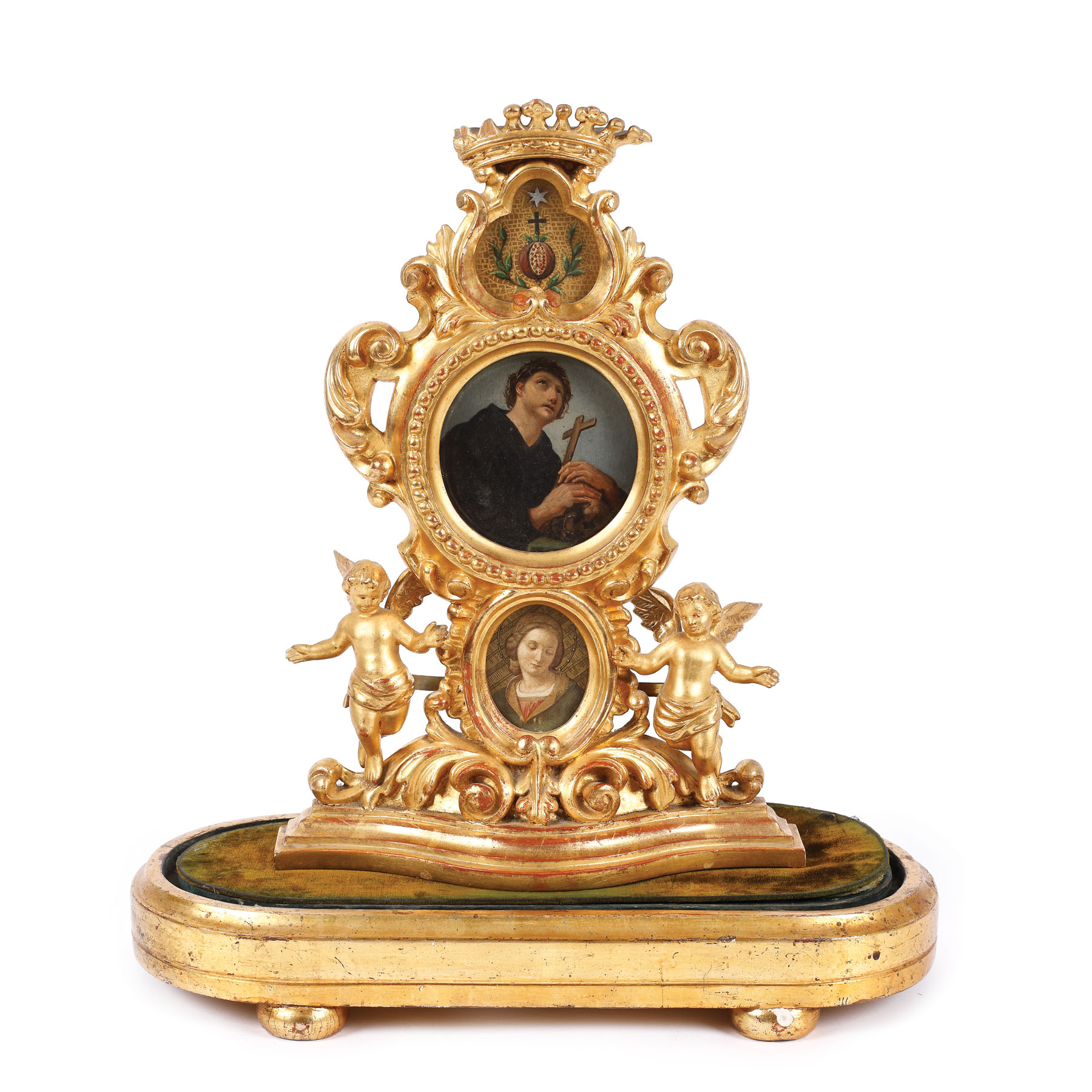 390. Icoană de altar, "Sfântul Ioan bineplăcut înaintea lui Dumnezeu", cu ramă decorată în stil Rococo și coroana regală, influență catolică, 1857