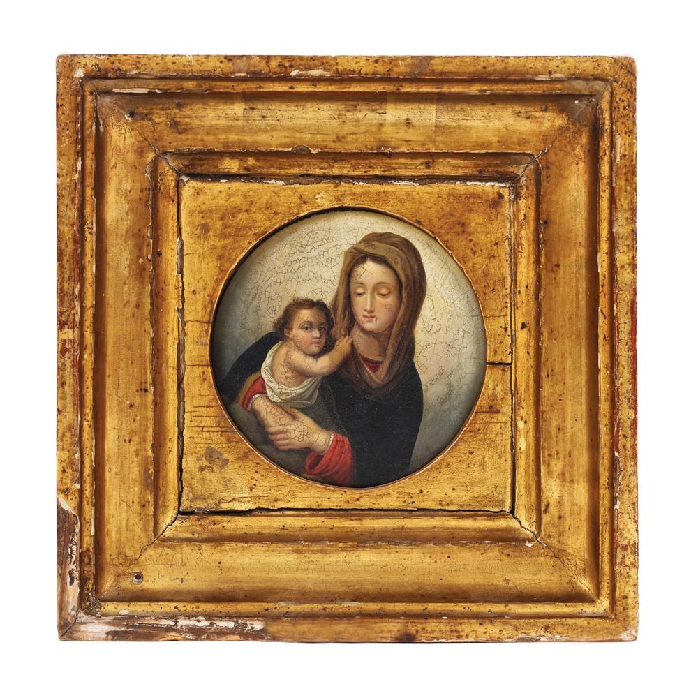389. Icoană pe lemn, ”Madona cu Pruncul”, influență catolică, sec. XIX