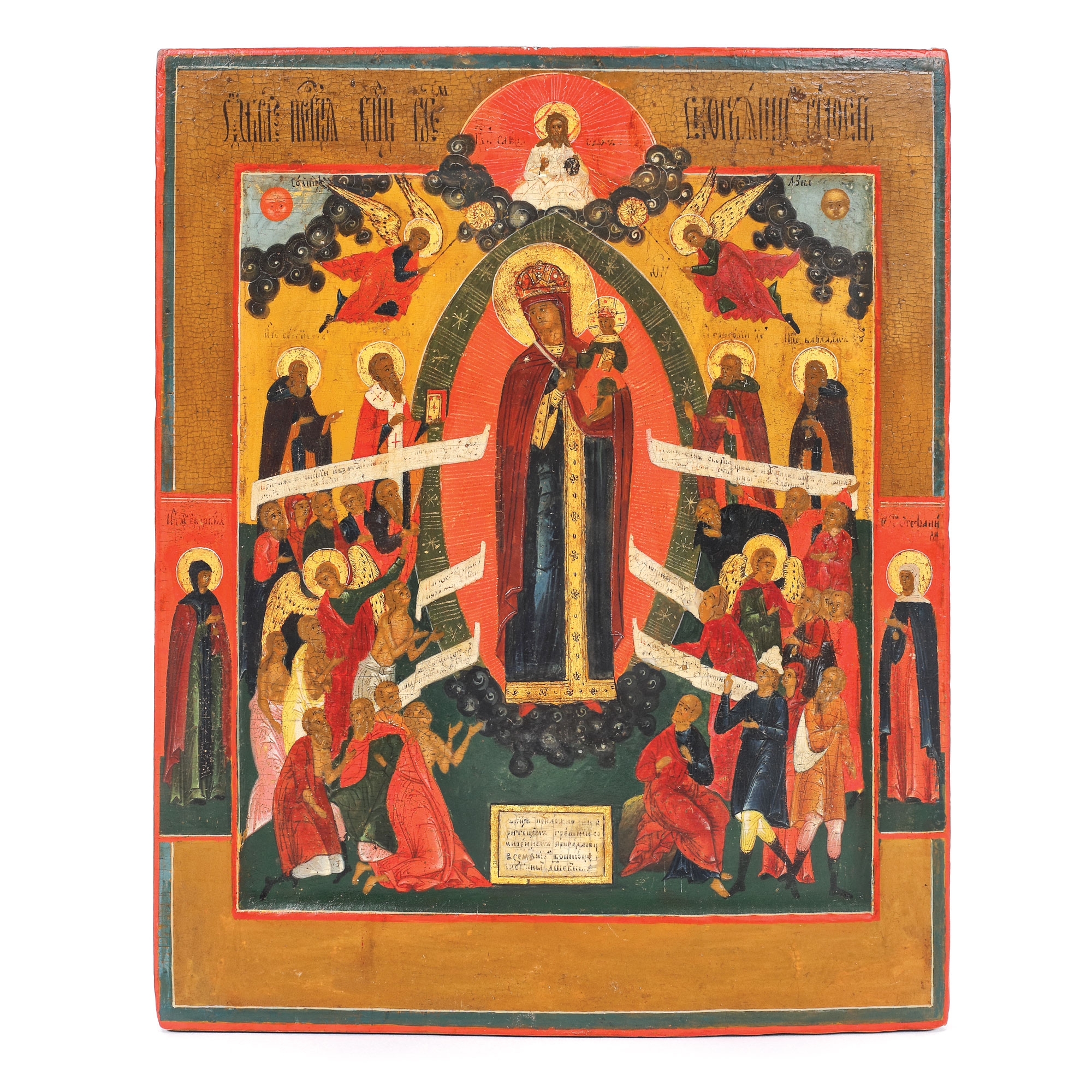 394. Icoană pe lemn, "Maica Domnului cu Pruncul - Pavăză celor îndurerați și bolnavi”, școală rusească, a doua jumătate a sec. XIX