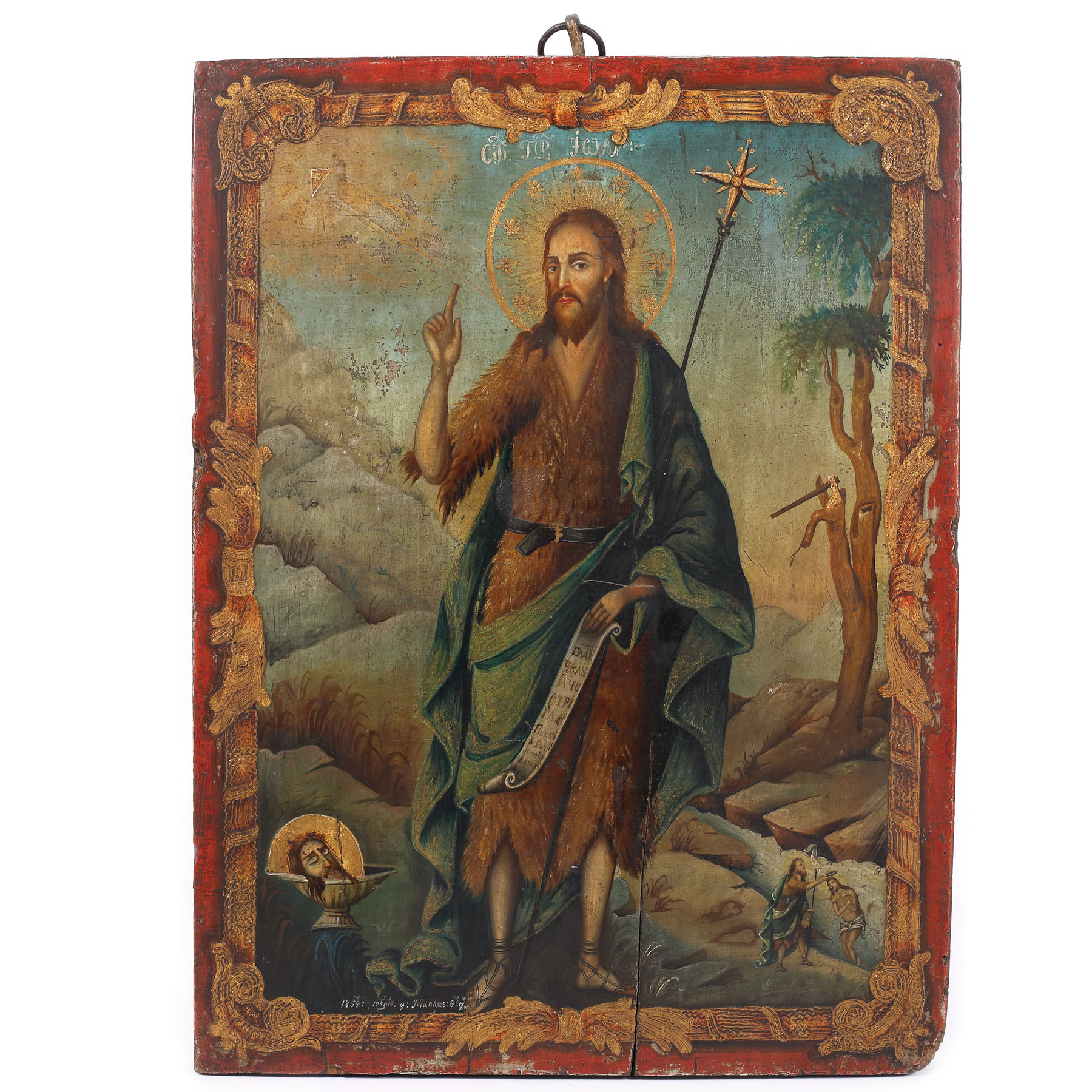 391. Icoană pe lemn, "Sfântul Ioan Botezătorul", zugrav Nicolae, școală sud-dunăreană, 10 aprilie 1859