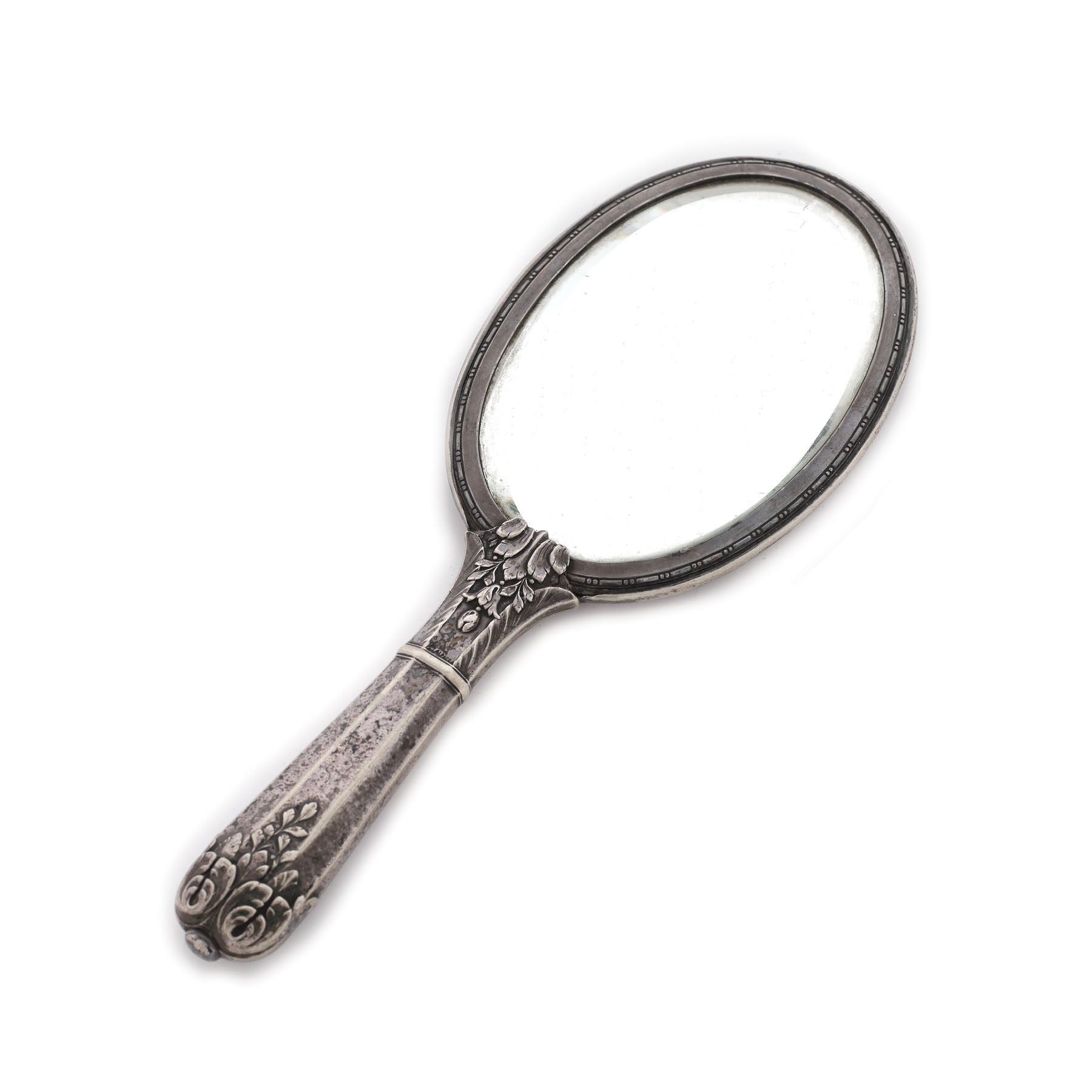 434. Oglindă argintată, pentru toaletă, de mână, decorată cu ghirlande vegetale