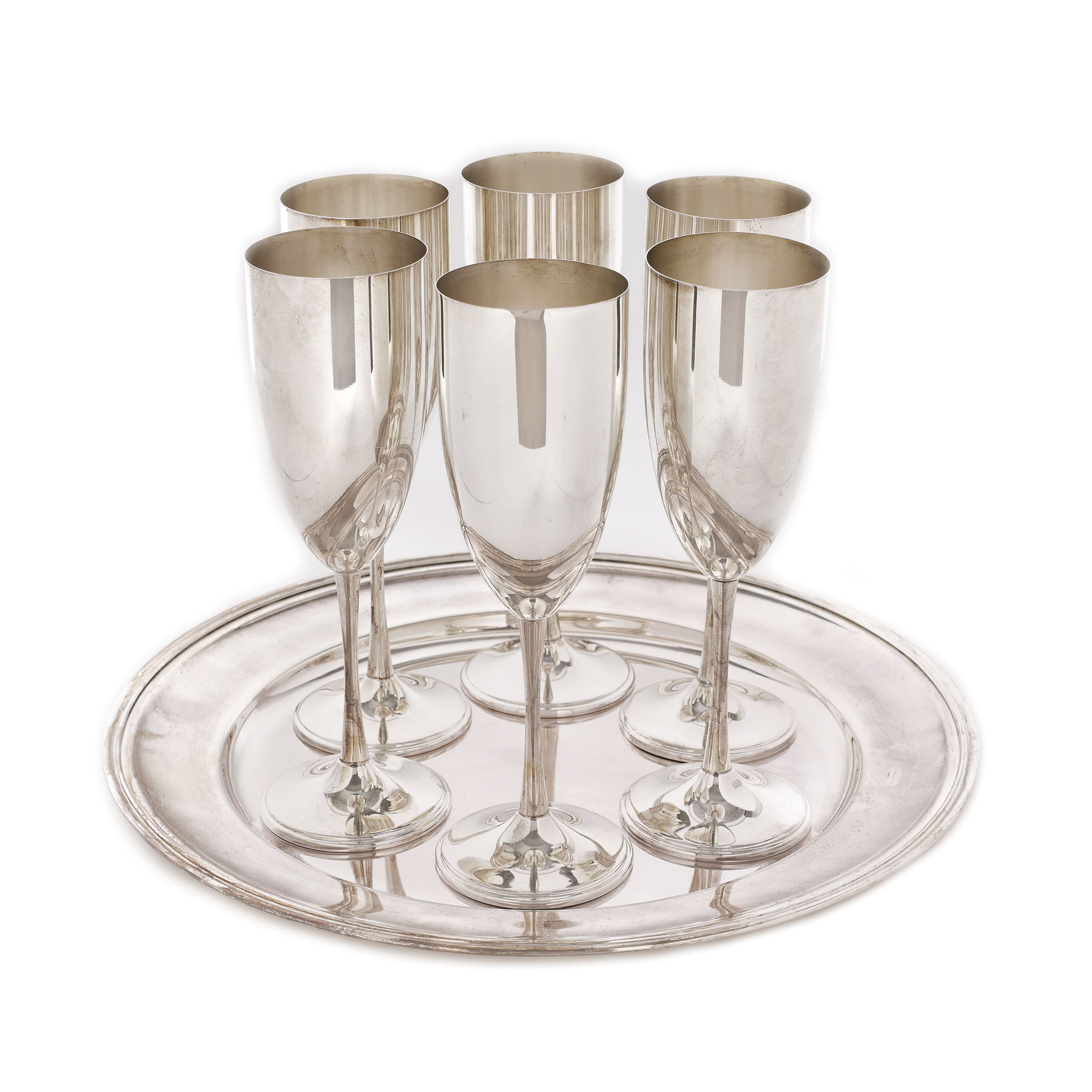 431. Tavă cu șase pahare din argint, pentru șampanie