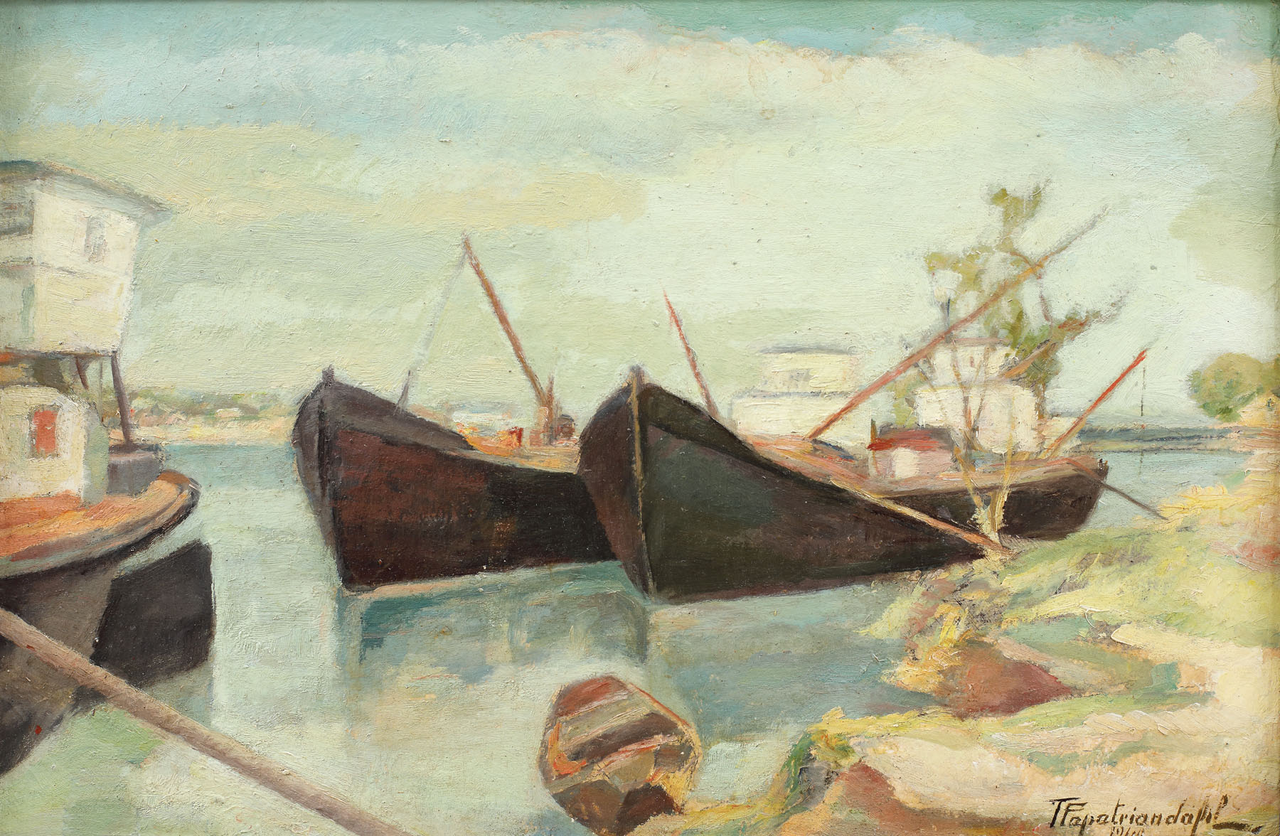 semnat și datat dreapta jos, cu brun, "T. Papatriandafil, 1940"