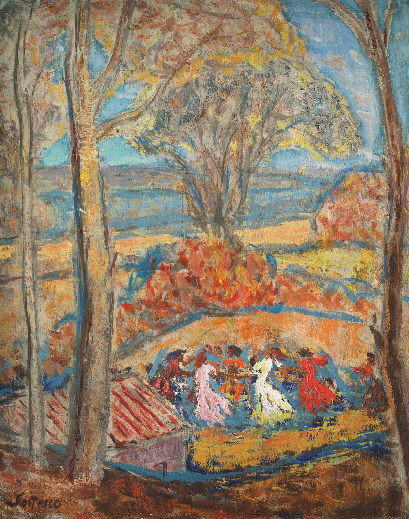 semnat stânga jos, cu brun, ”Scortesco”