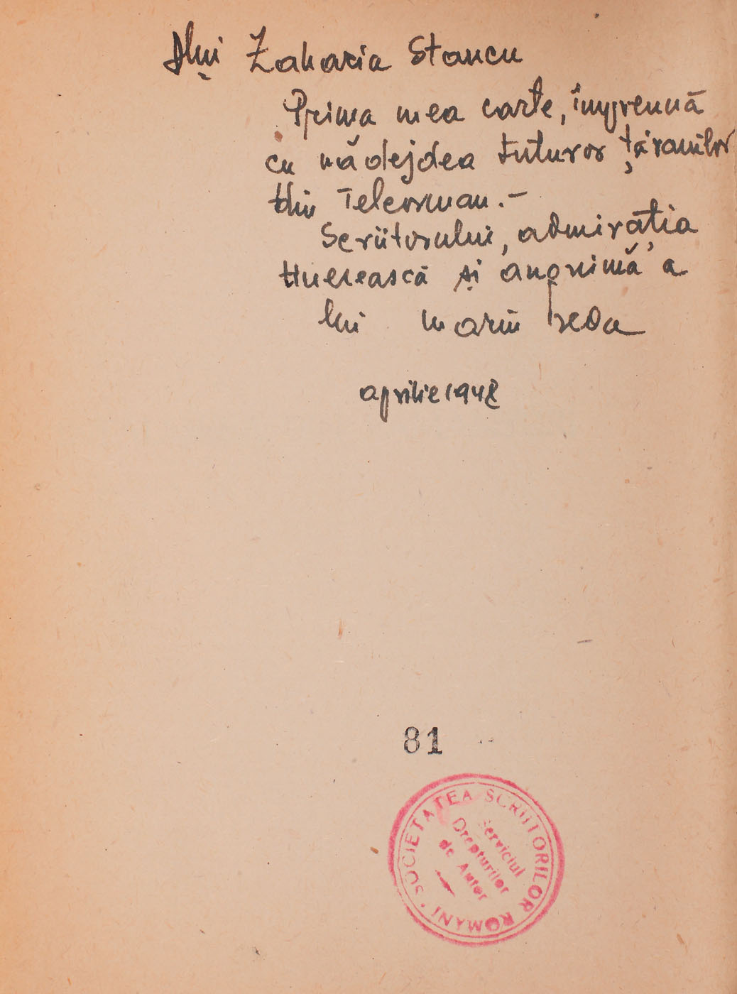 51. "Întâlnirea din pământuri", de Marin Preda, Bucureşti, 1948, cu dedicaţia autorului către Zaharia Stancu