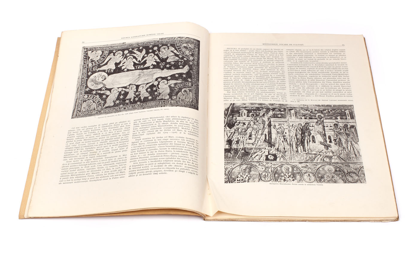 60. "Istoria literaturii române vechi", de Nicolae Cartojan, vol. I, Bucureşti, 1940, cu dedicaţia autorului către Zaharia Stancu