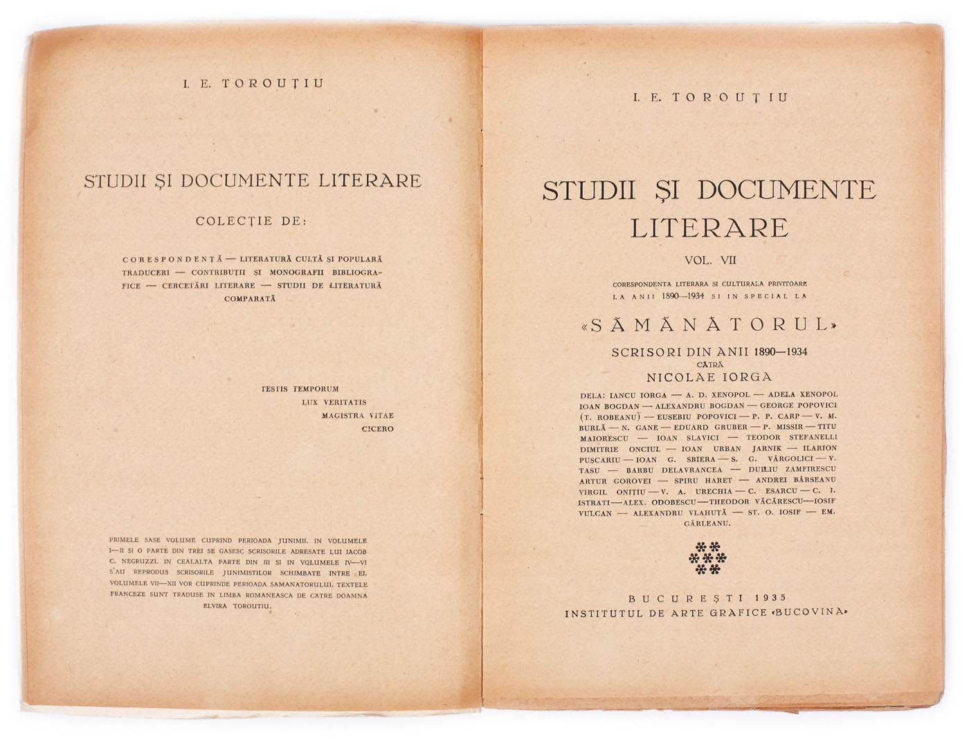 59. "Studii şi documente literare", de Ilie E. Torouțiu, vol. VII, Institutul de Arte Grafice "Bucovina", 1936