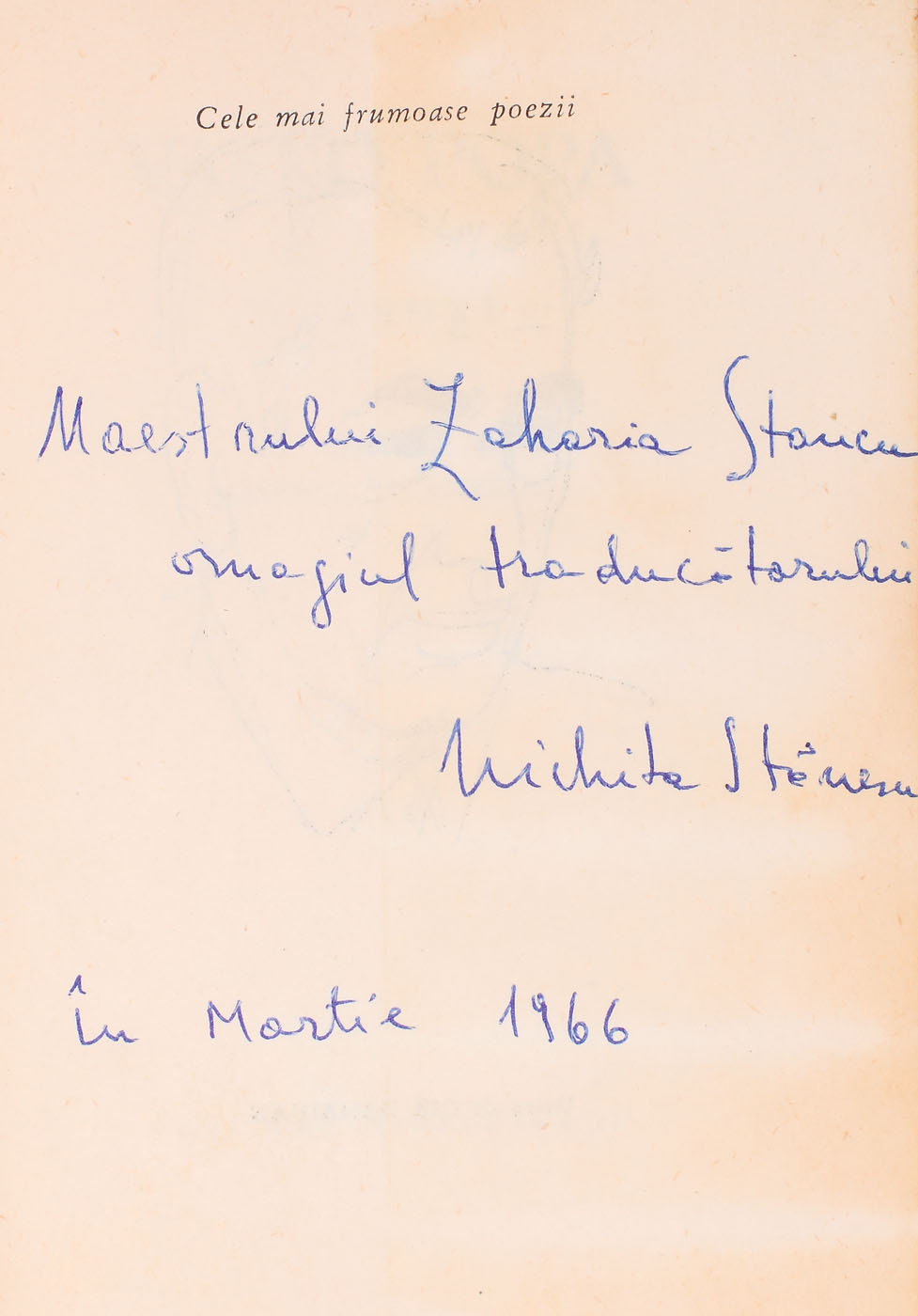 41. "Versuri", de Vasko Popa, Bucureşti, 1966, cu dedicaţia traducătorului Nichita Stănescu către Zaharia Stancu