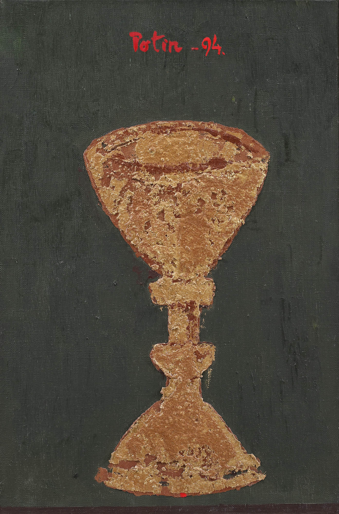 intitulat și datat central sus, cu roșu, "Potir, (19)94"; semnat, datat, intitulat și localizat pe verso, cu negru, "Marin Gherasim, Potir, Romania, 1994"