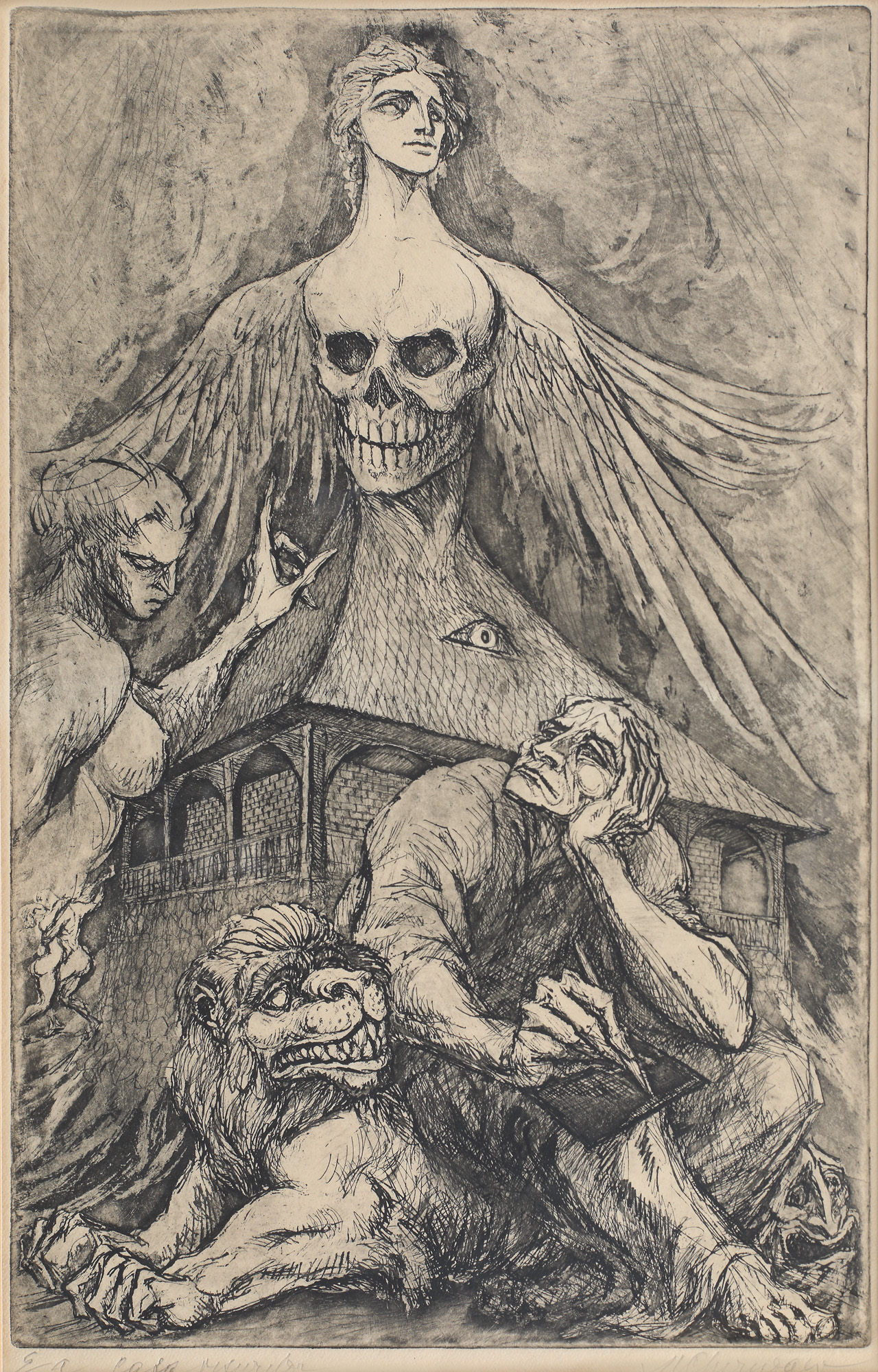 semnat dreapta jos, în creion, "M. Chirnoagă"; intintulat si notat stânga jos, în creion, "Casa Maurilor, E.a"