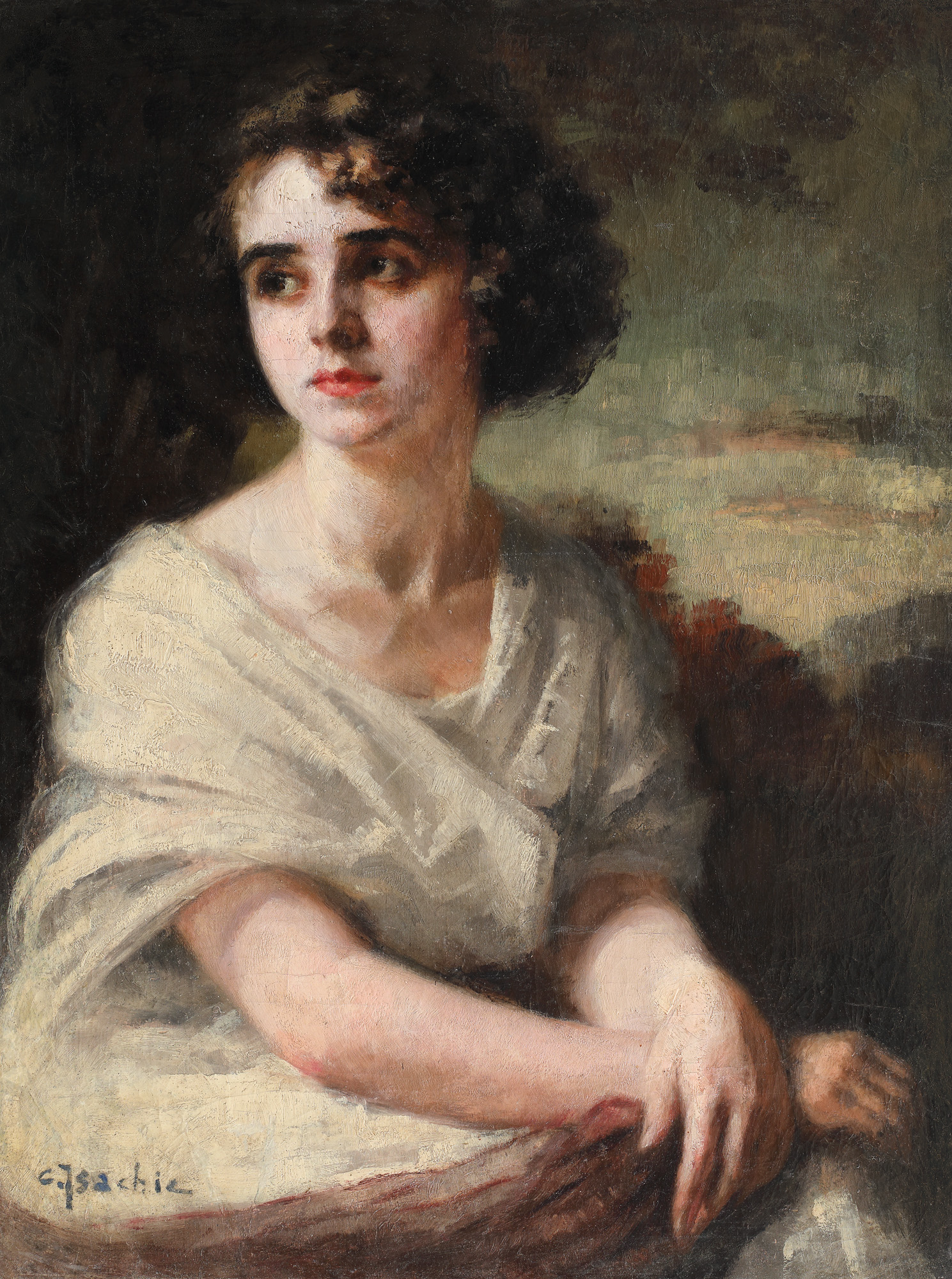 semnat stânga jos, cu albastru, ”C. Isachie”