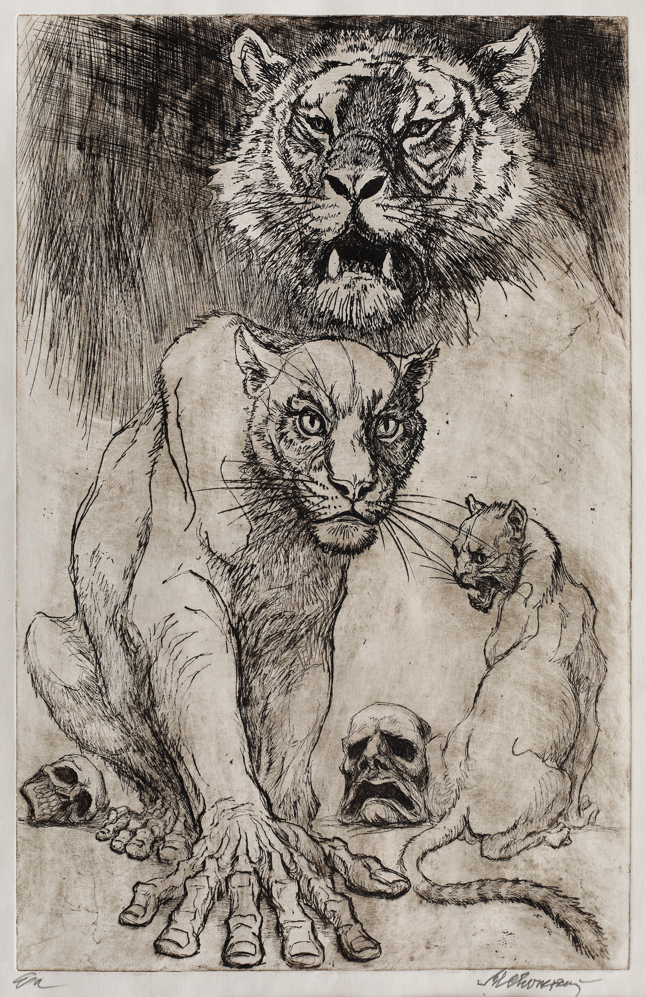 semnat dreapta jos, sub cadru, în creion, ”M. Chirnoagă”; notat stânga jos, sub cadru, în creion, ”E.a.”