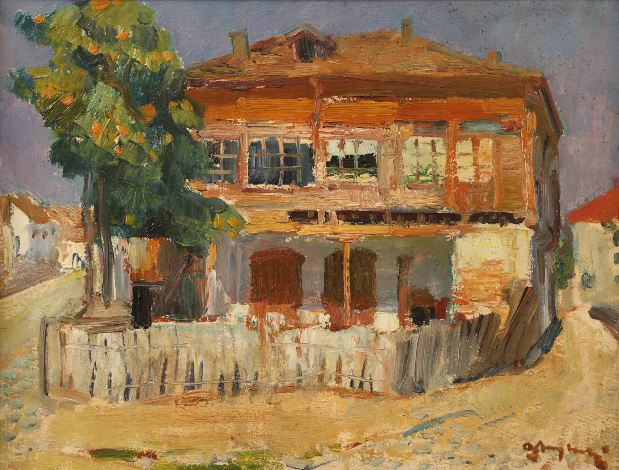 semnat dreapta jos, cu brun, ”O. Angheluță”