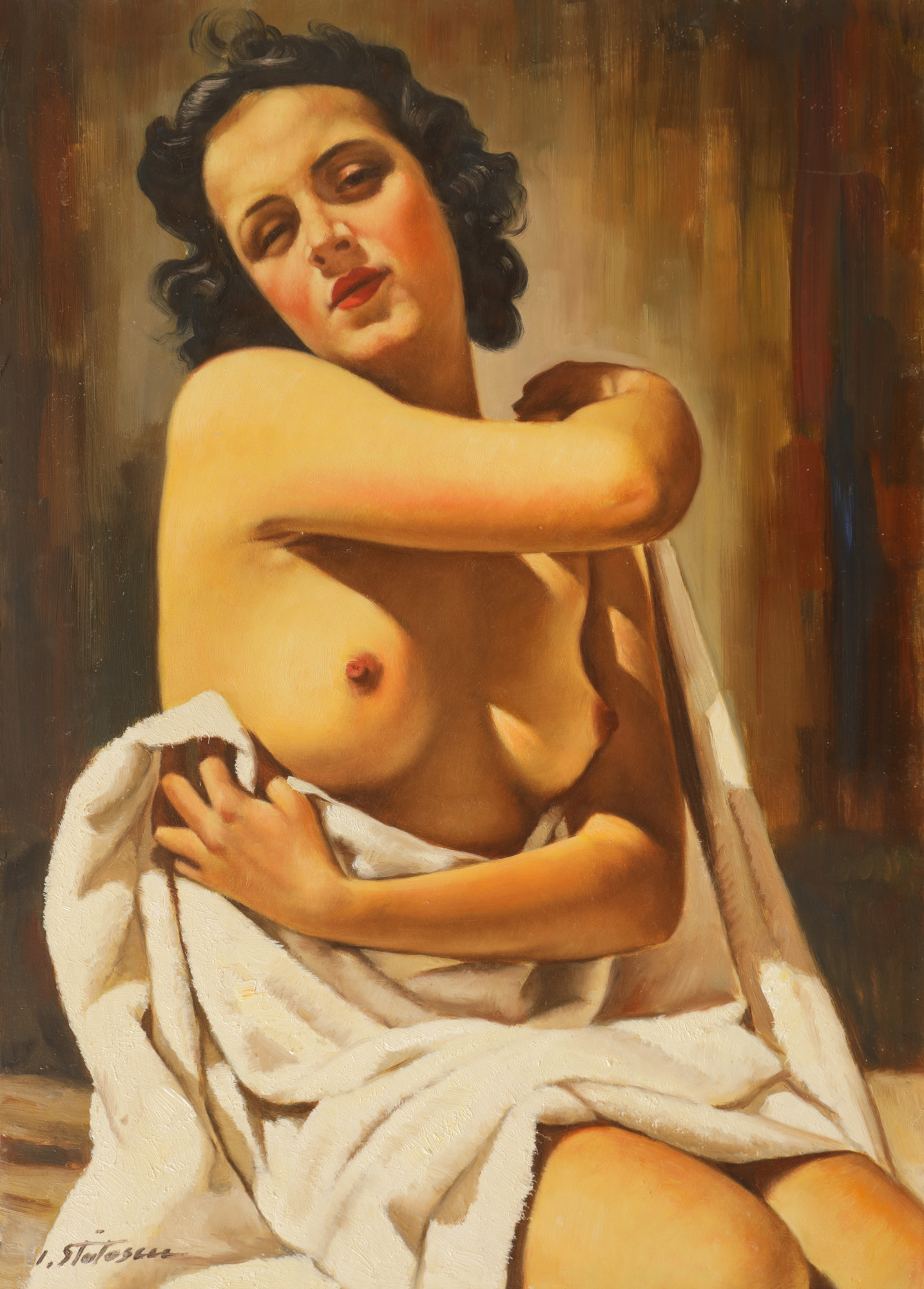 semnat stânga jos, cu brun, ”I. Stătescu”