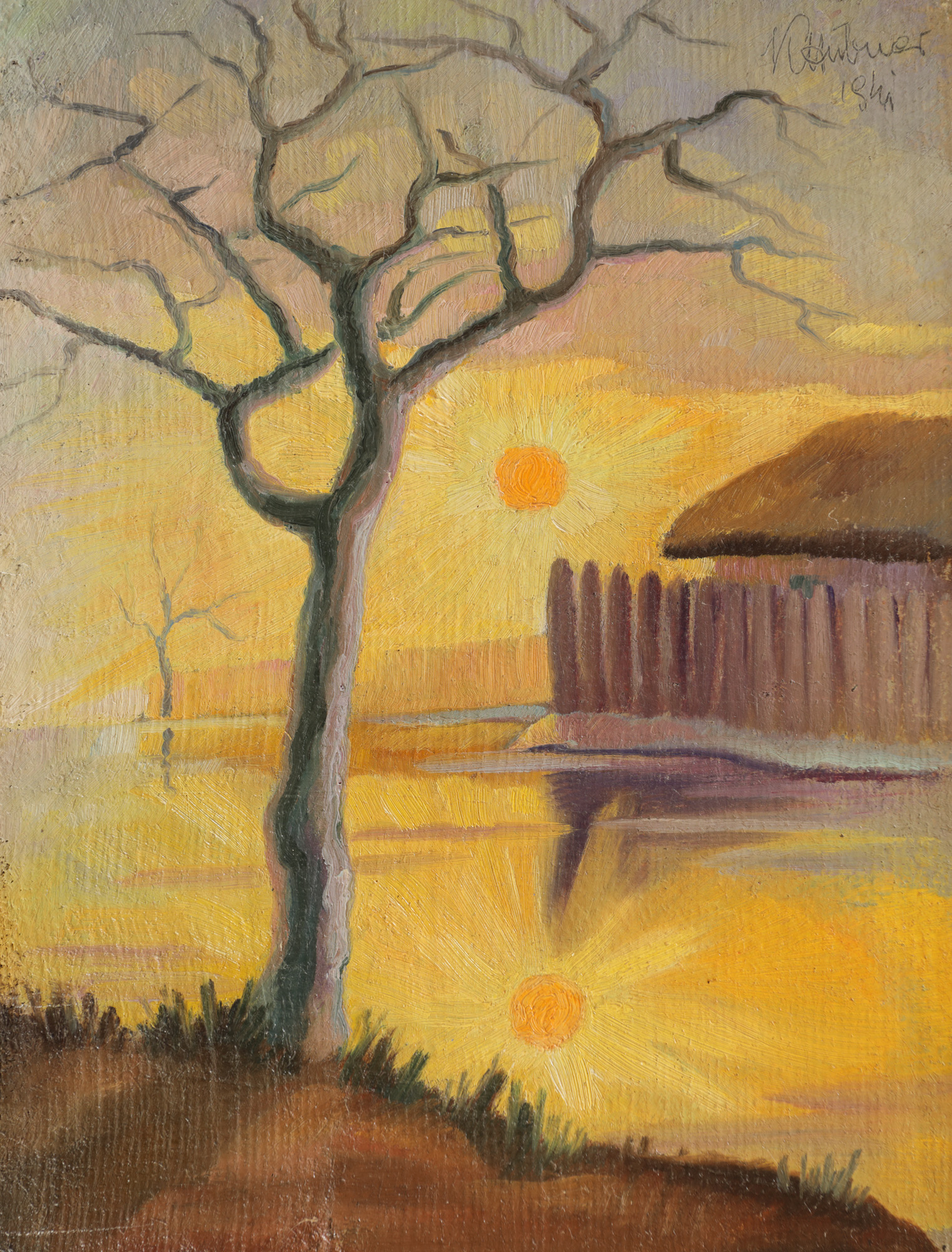 semnat și datat dreapta sus, în pastă, "K. Hubner, 1941"