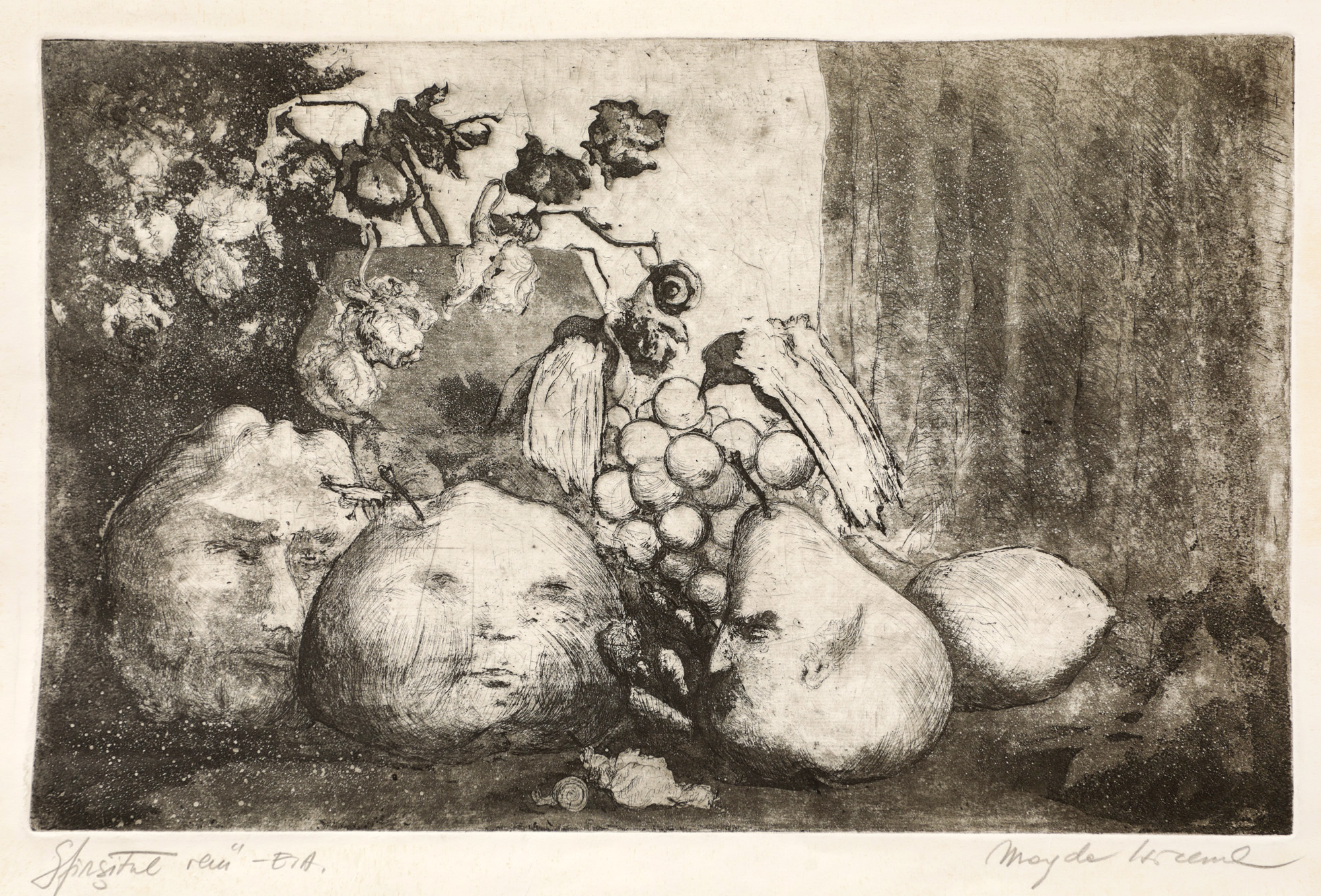 semnat dreapta jos, în creion, ”Magda Isăcescu”; notat și intitulat stânga jos, în creion, ”Sfârșitul verii, E.A.”