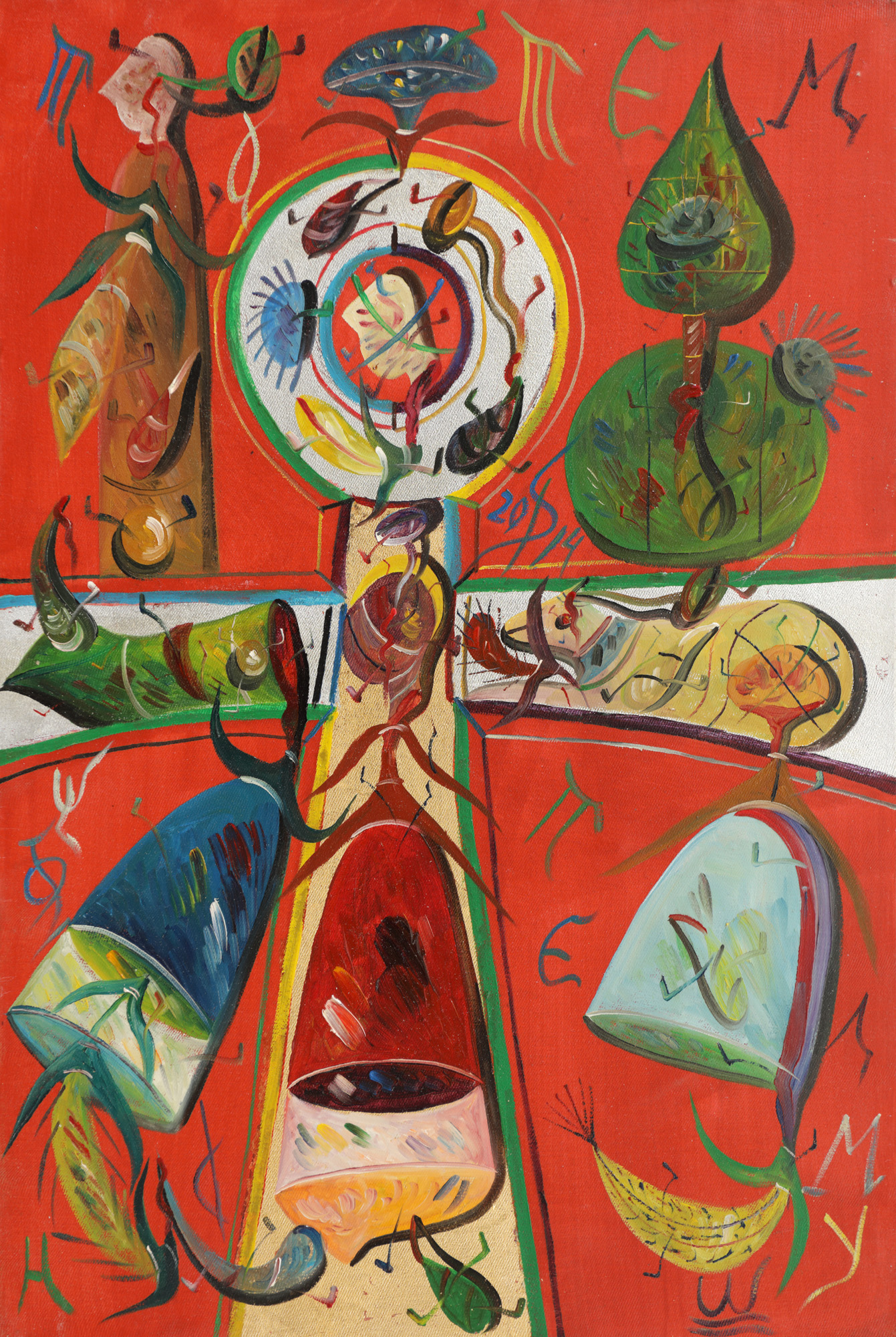 semnat și datat central dreapta, cu albastru, ”SP, 2014”