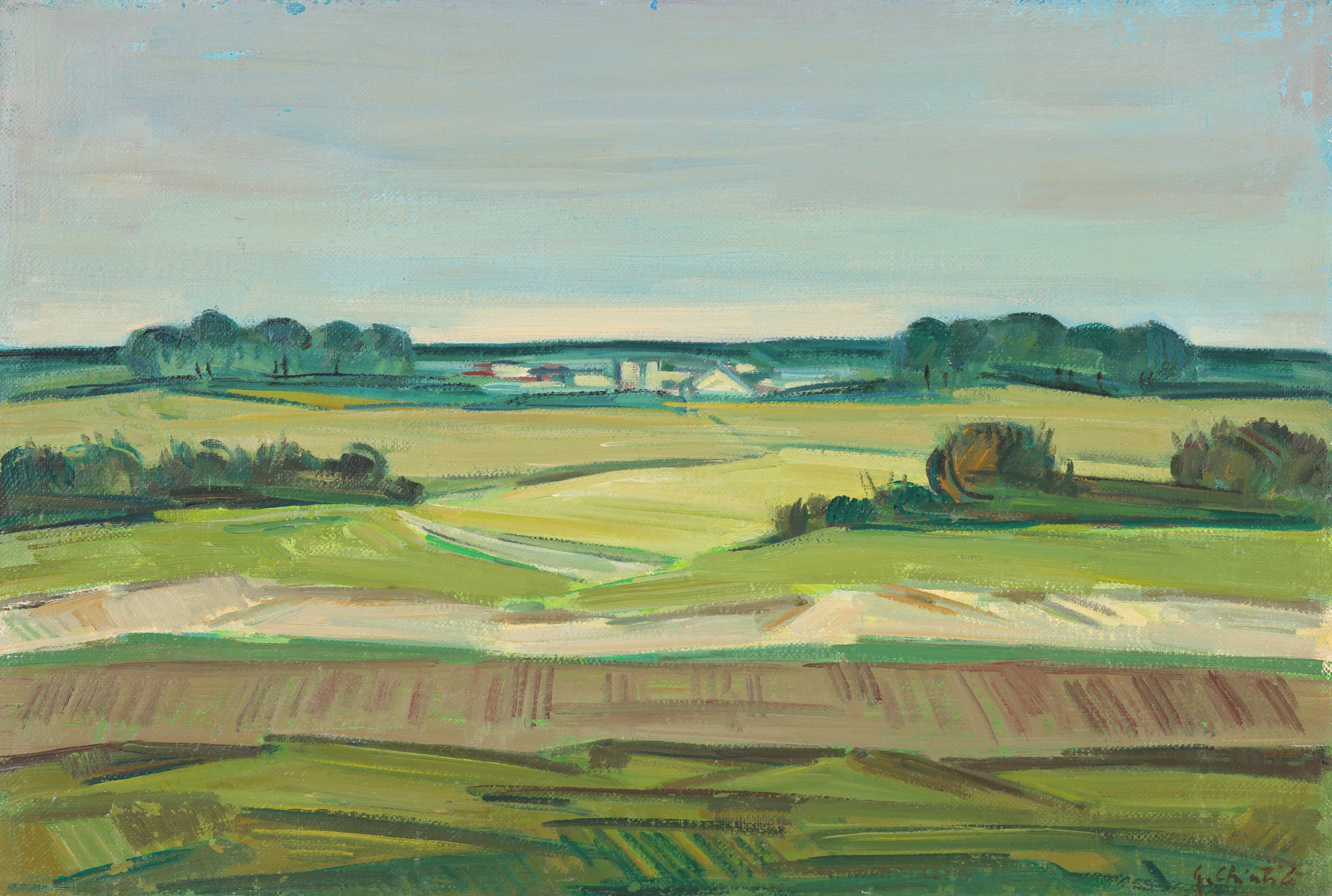 semnat dreapta jos, cu brun, ”S. Chintilă”