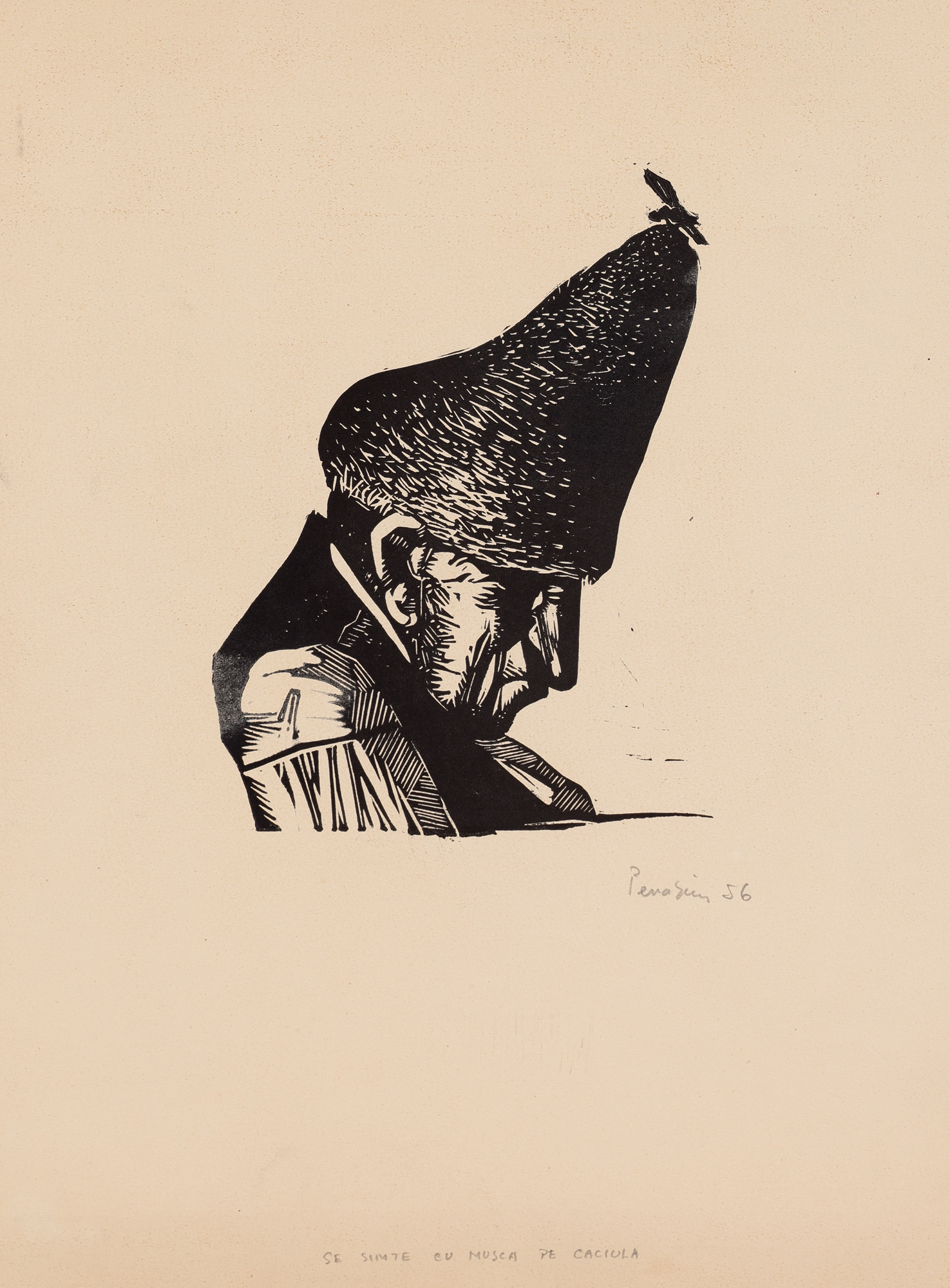 100. Se simte cu musca pe căciulă! (din seria ”Proverbe și zicători”) [1956]