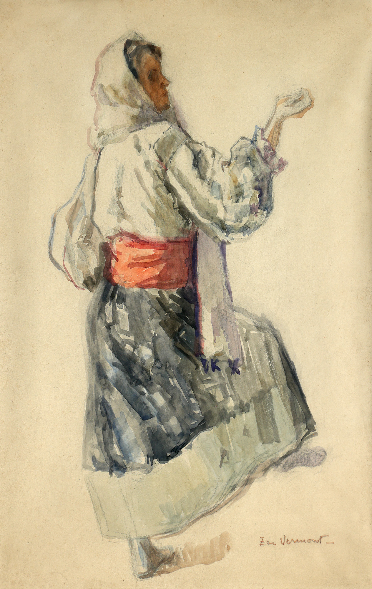 semnat dreapta jos, cu brun, "Zoe Vermont"