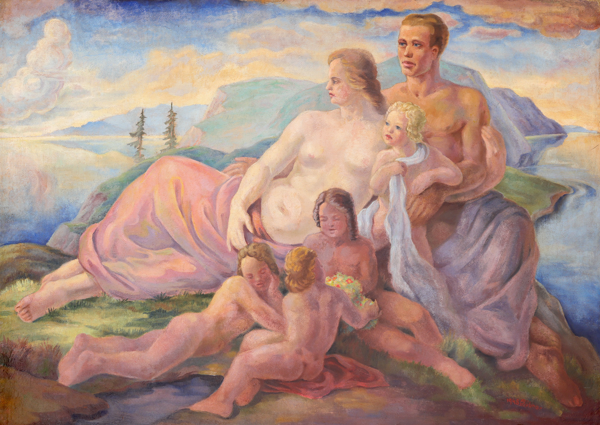 semnat și datat dreapta jos, cu roșu, ”K. Hubner, 1948”