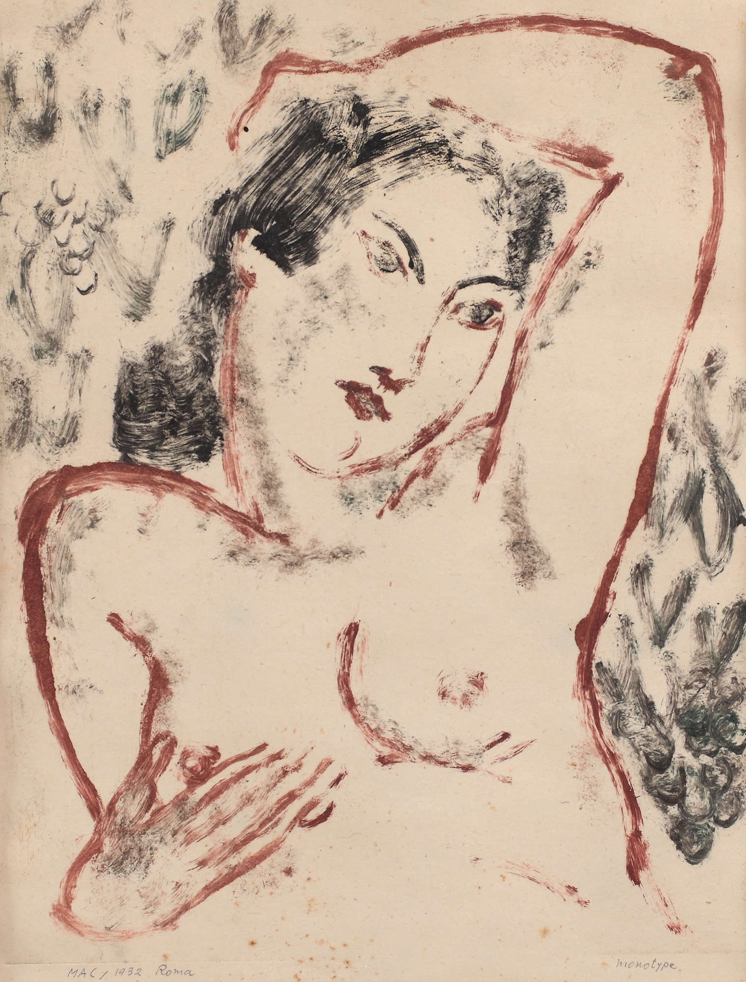 semnat, datat și localizat stânga jos, în creion, "MAC, 1932, Roma"; notat dreapta jos, în creion, "monotype"