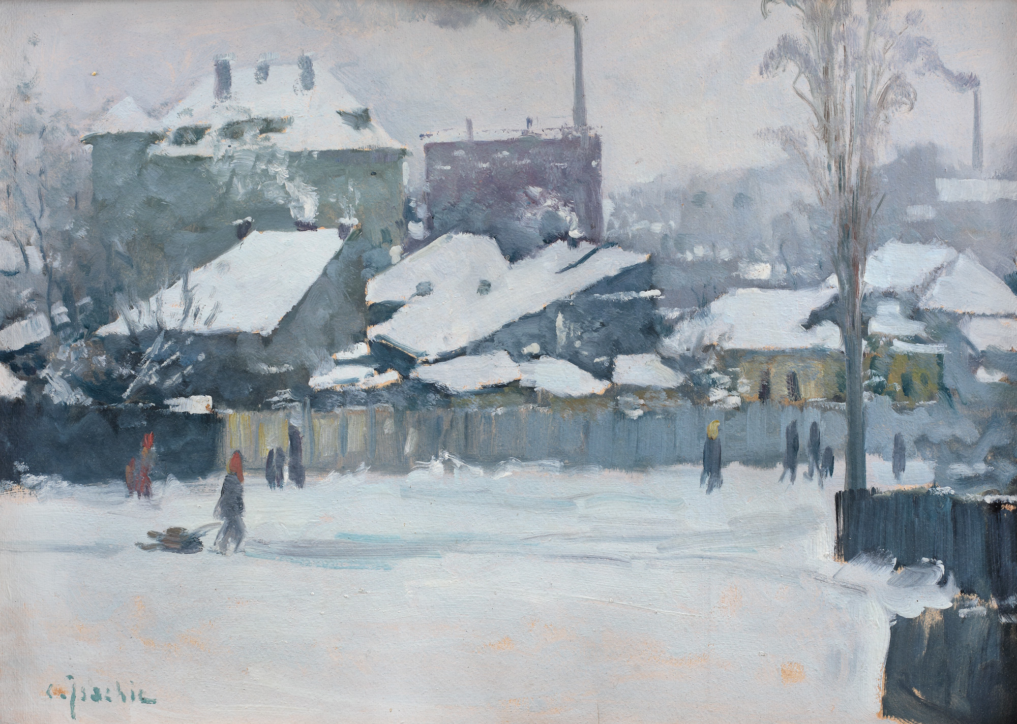 semnat stânga jos, cu albastru, ”C. Isachie”