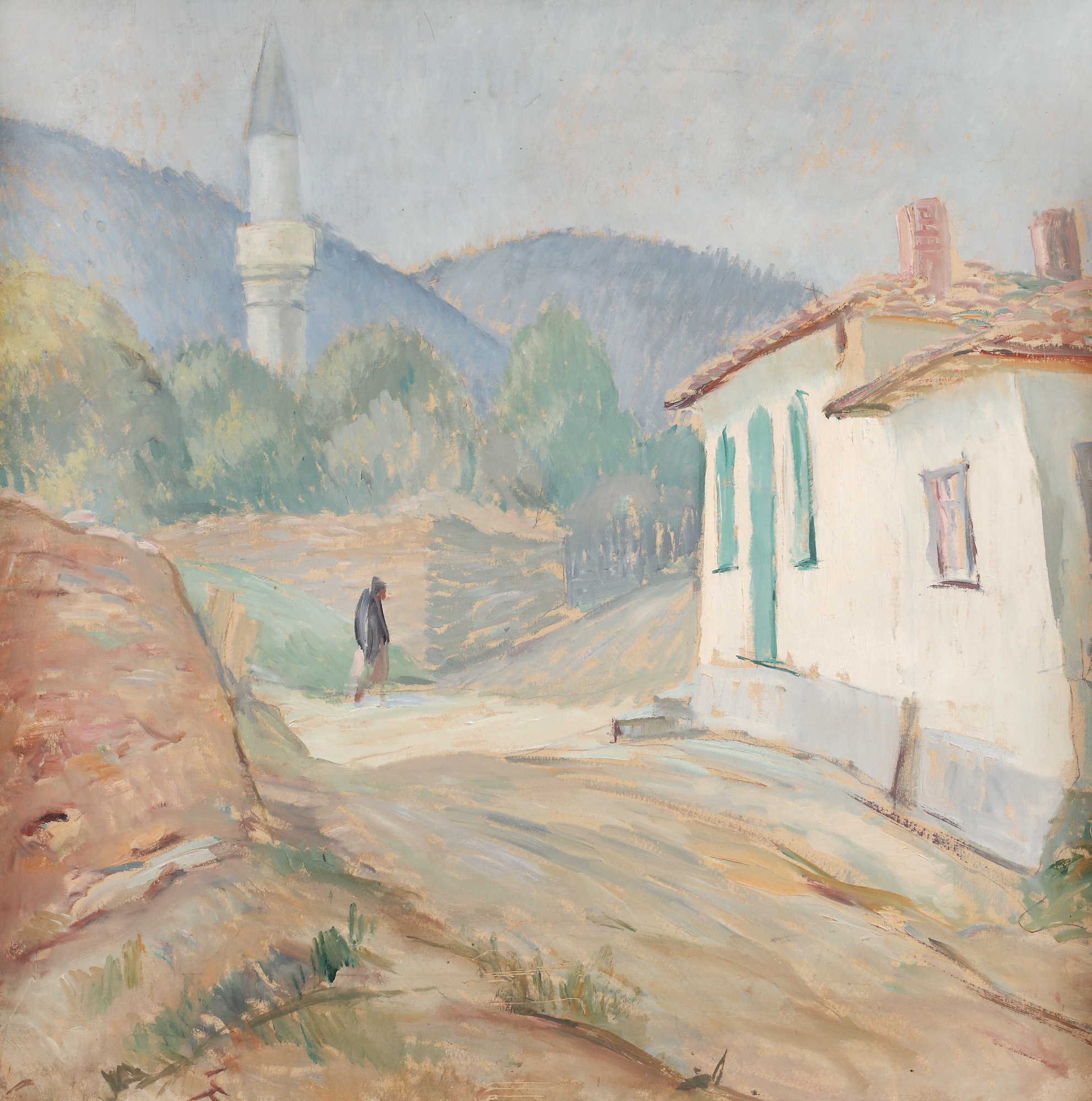 semnat și intitulat pe verso, în creion, ”M. Velea, Peisaj din Babadag”