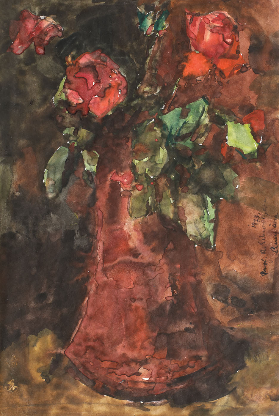 semnat și datat lateral dreapta, cu negru, "Prof. R. Schweitzer-Cumpăana, 1973"