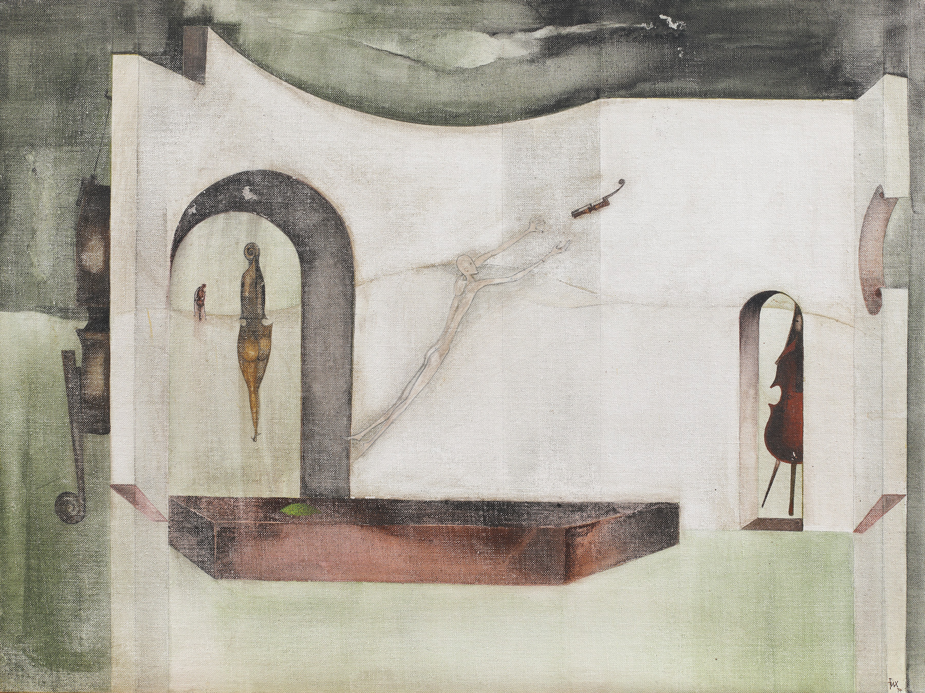 semnat și datat dreapta jos, cu brun, "Fux, (19)74"