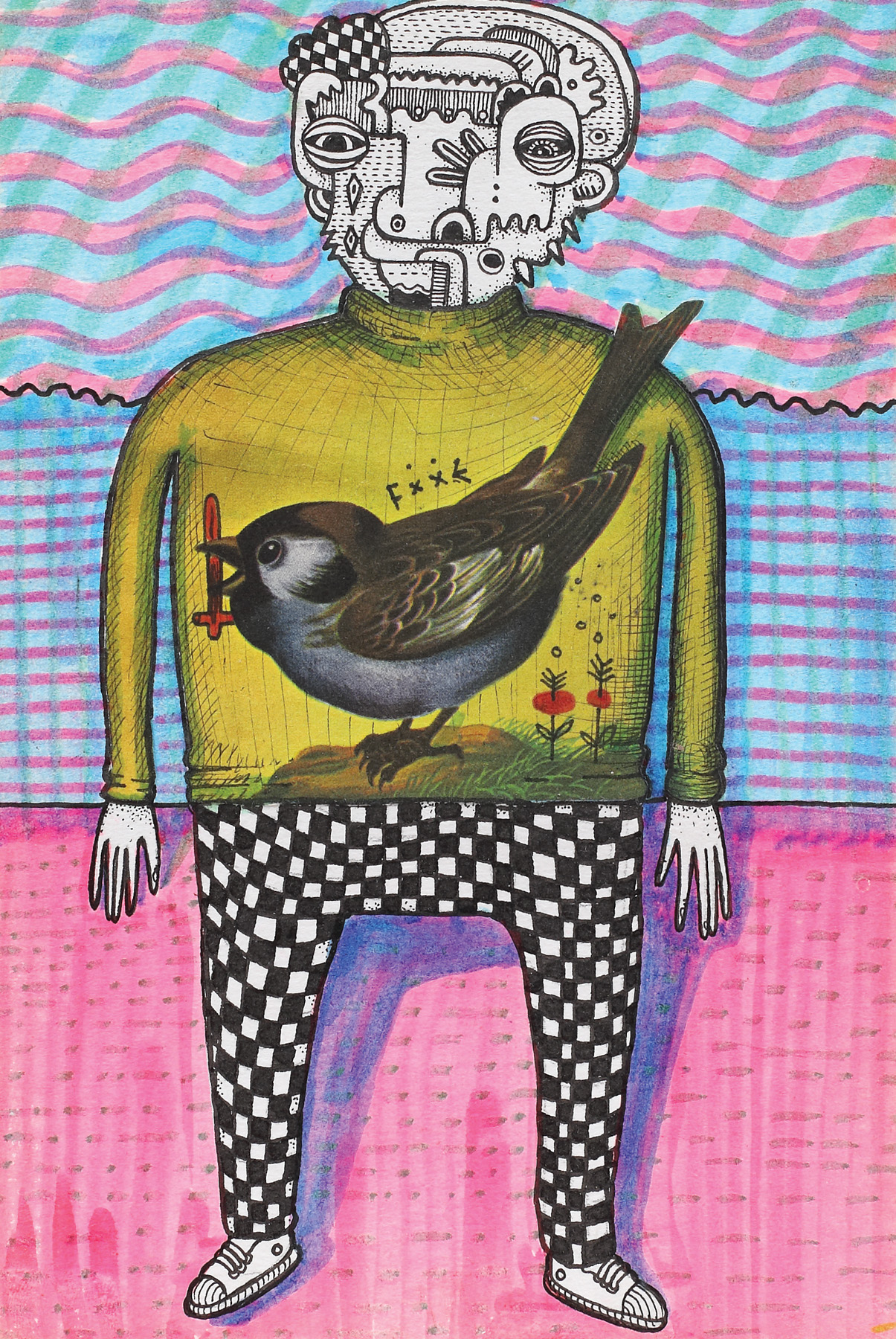 colaj, markere și tuș pe hârtie lipită pe carton